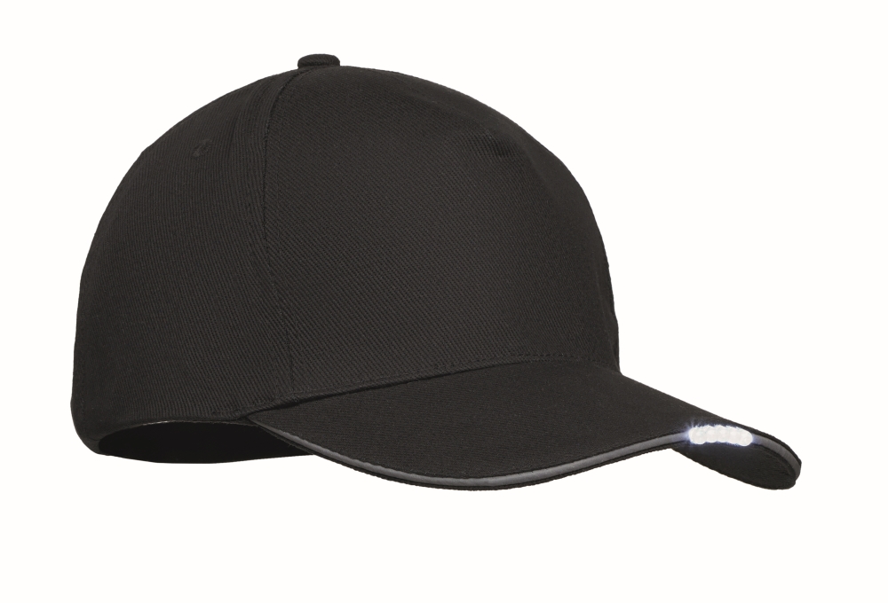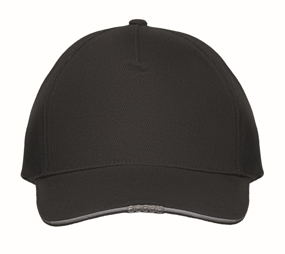 Pětipanelová baseballová čepice z 220 gr/m2 bavlny s LED světlem a kovovou sponou. Včetně nabíjecího USB kabelu. Rozměry: 27 x 16 cm