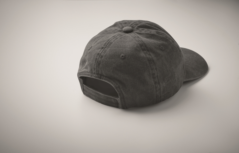 Šestipanelová baseballová čepice z prané 265g bavlny s vintagevzhledem. S nastavitelným zapínáním na suchý zip. Šest prošitých oček. Velikost 7 1/4. Rozměry: 21 x 16 x 11 cm