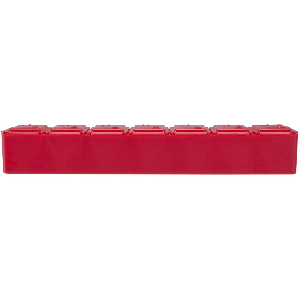 Zůstaňte organizovaní a důslední s tímto pouzdrem na multivitaminy, které je navrženo tak, aby vaše denní doplňky stravy byly v souladu s plánem. Obsahuje sedm jasně označených přihrádek (od pondělí do neděle), abyste nikdy nevynechali dávku. Je kompaktní a odolné, ideální jak na cesty, tak na každodenní použití, což usnadňuje přenášení a ukládání vitamínů. Rozměry: 14,9 x 2,4 x 2,8 cm