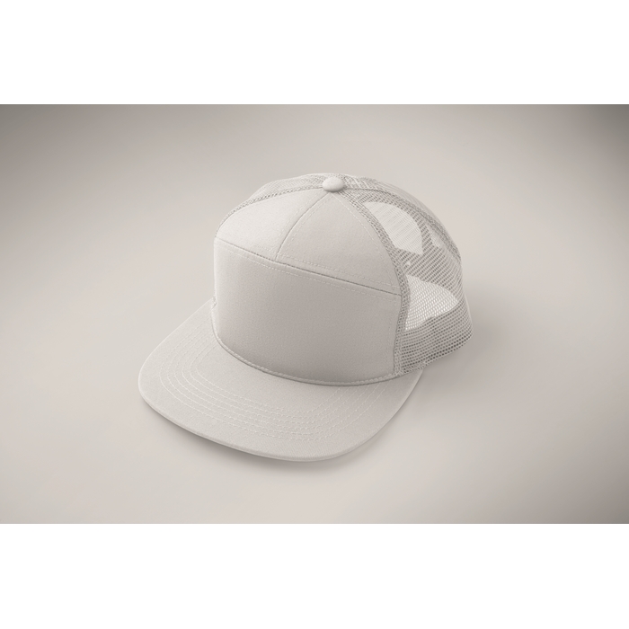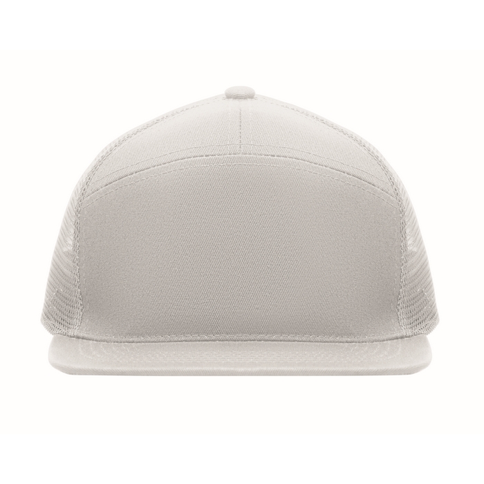 Sedmipanelová kšiltovka s plochým kšiltem z bavlněného 235g kepru s polyesterovou síťovinou na zadní straně a plastovým zapínáním. Rozměry: 22 x 16 x 11.5 cm