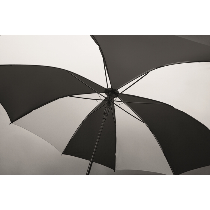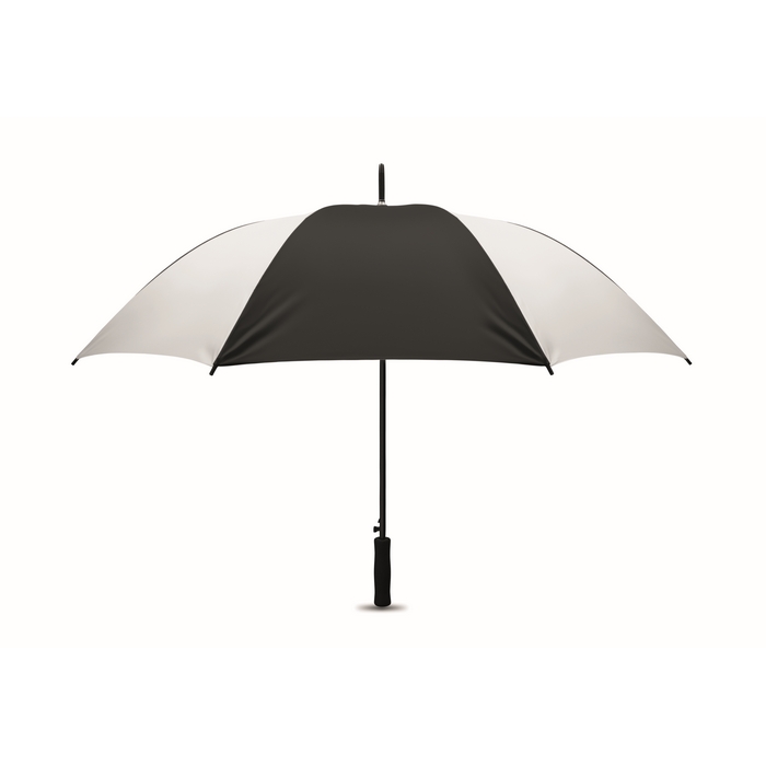 27 deštník z hedvábného PE s EVA rukojetí. Černý pokovaný rám a plastové černé konečky. Automatické otevírání. Rozměry: O116 x 94,3 cm