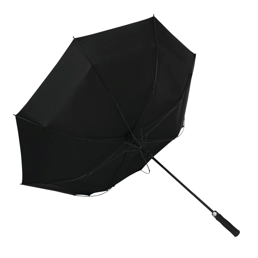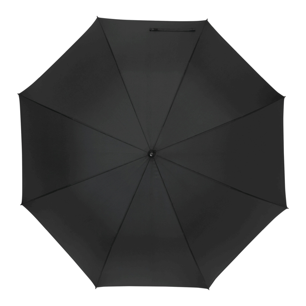 Automatický golfový deštník s rukojetí z laminátu, žebry z laminátu, plastovými špičkami, rukojetí z EVA s integrovaným drukem, stříškou z polyesterové pongee z recyklovaného plastu a zapínáním na suchý zip. Rozměry: O130 / 102 cm