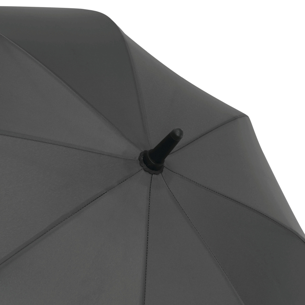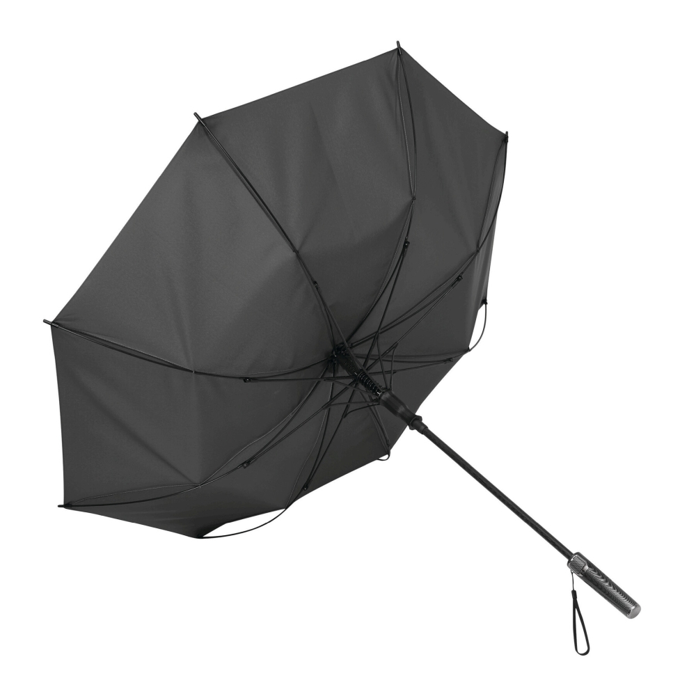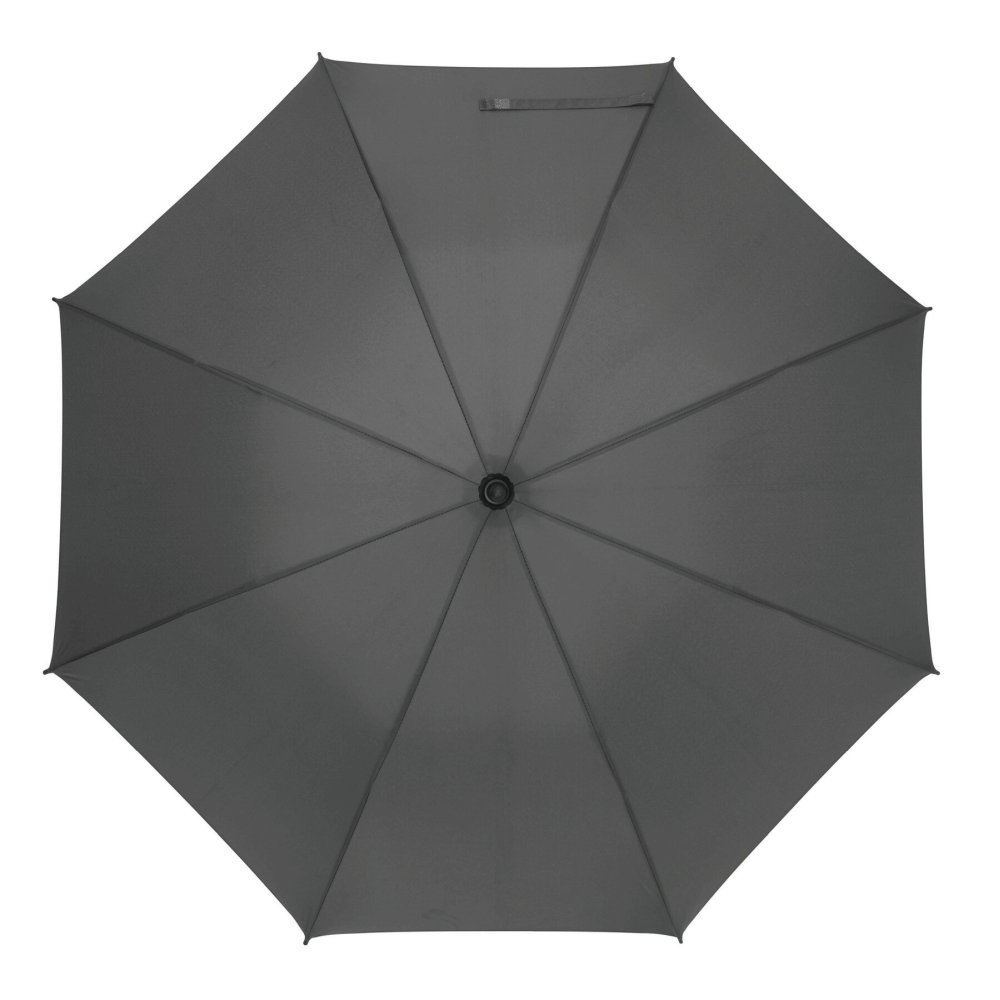 Automatický deštník s laminátovou rukojetí, laminátovými žebry, plastovými špičkami, plastovou rukojetí s karbonovým vzhledem s integrovaným drukem a poutkem na nošení, stříškou z prémiového polyesteru a zapínáním na suchý zip. Rozměry: O106 / 81,5 cm