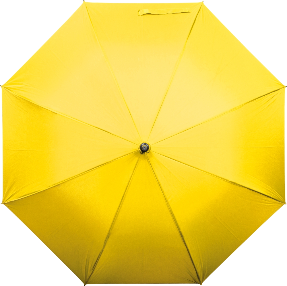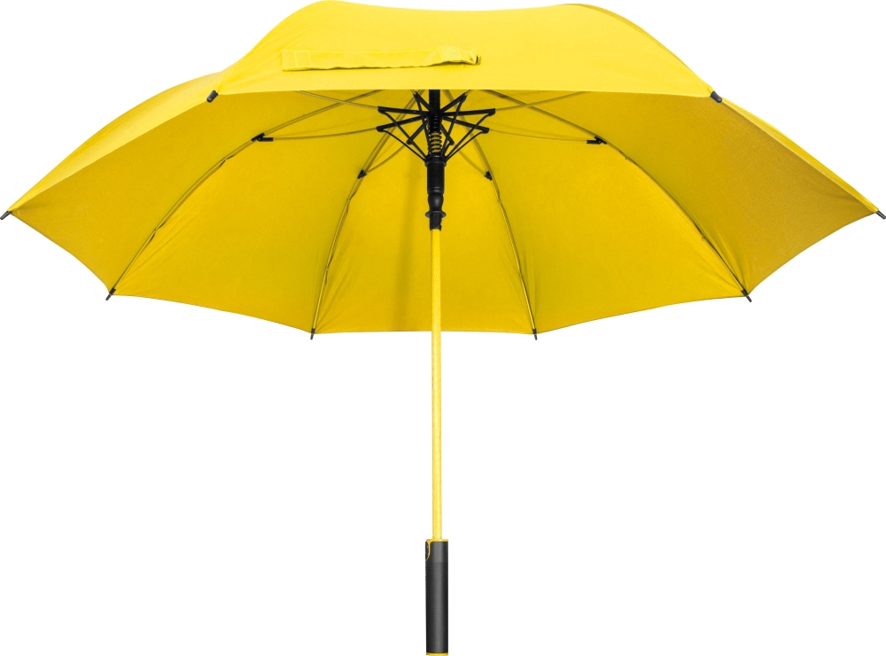 Klasický deštník s integrovanou kruhovou rukojetí, automatickým otvíráním, rámem a žebry ze sklolaminátu. Vyrobený z materiálu 190T pongee. Rozměry: o 120 x 93 cm