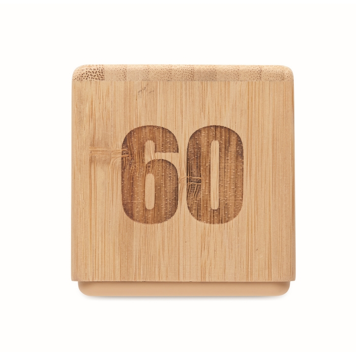 Bambusový otočný časovač s odpočítáváním času, minutka. Napájení ze 2 AAA baterií (nejsou součástí dodávky). Rozměry: 69 x 69 x 67.5 cm