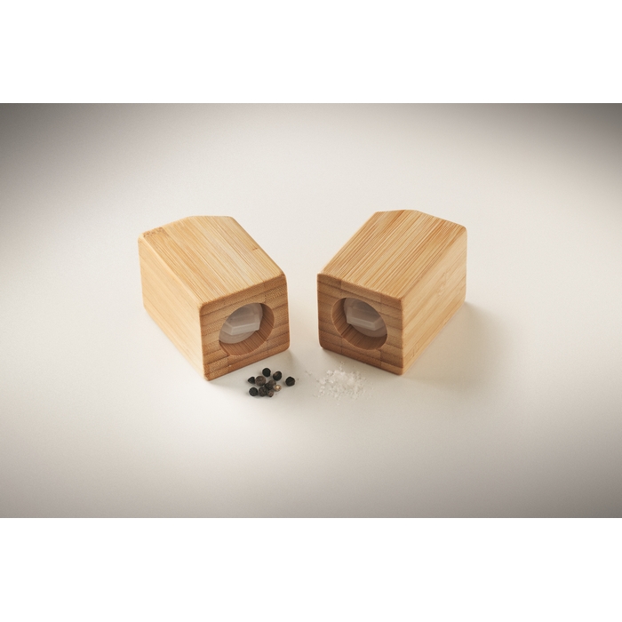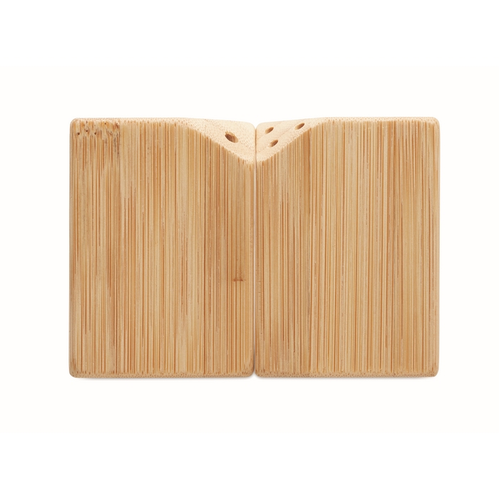 Slánka a pepřenka z bambusy s PP uzávěrem na spodní straně. Magneticky spojené dohromady. Rozměry: 10 x 5 x 7 cm