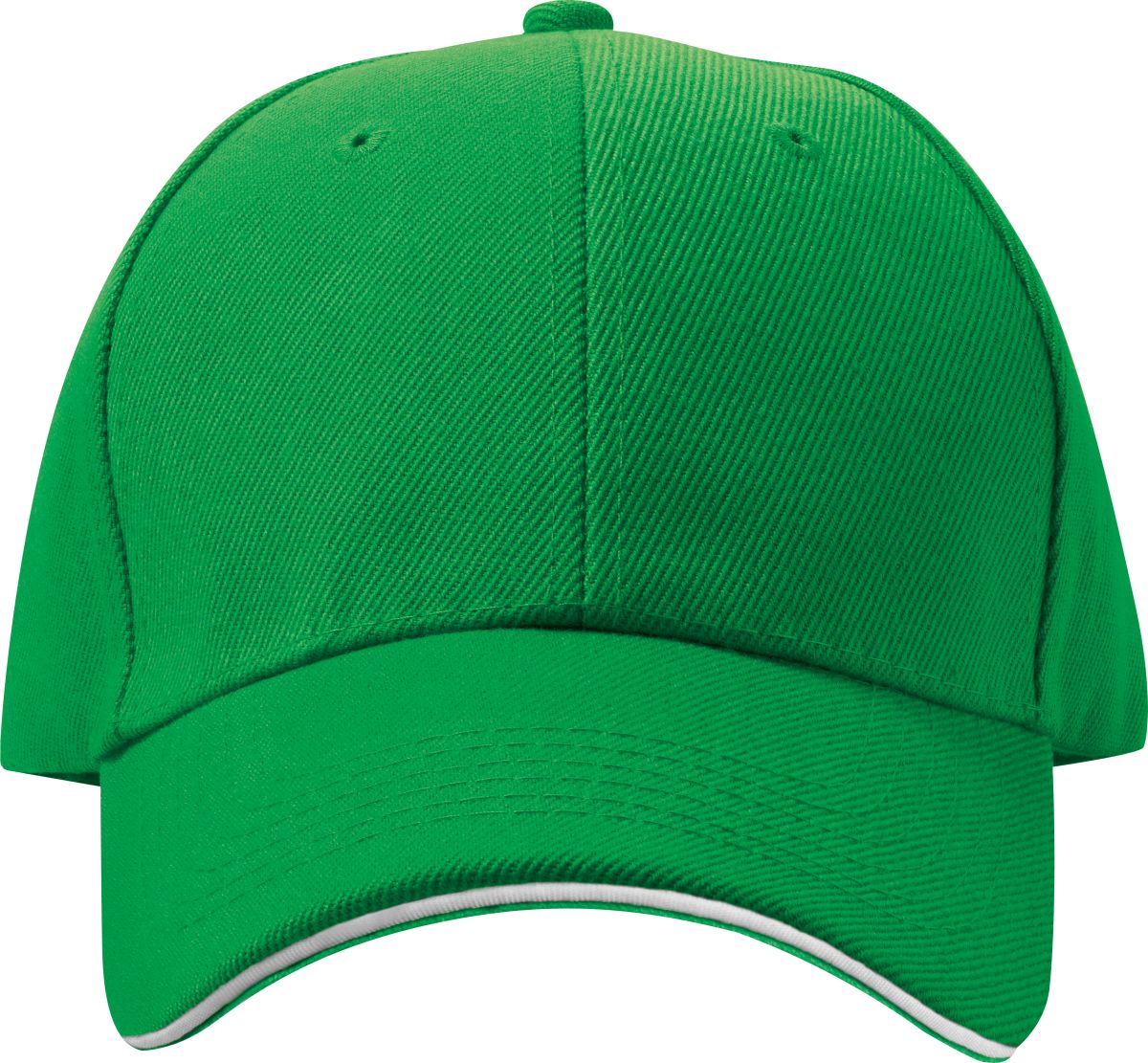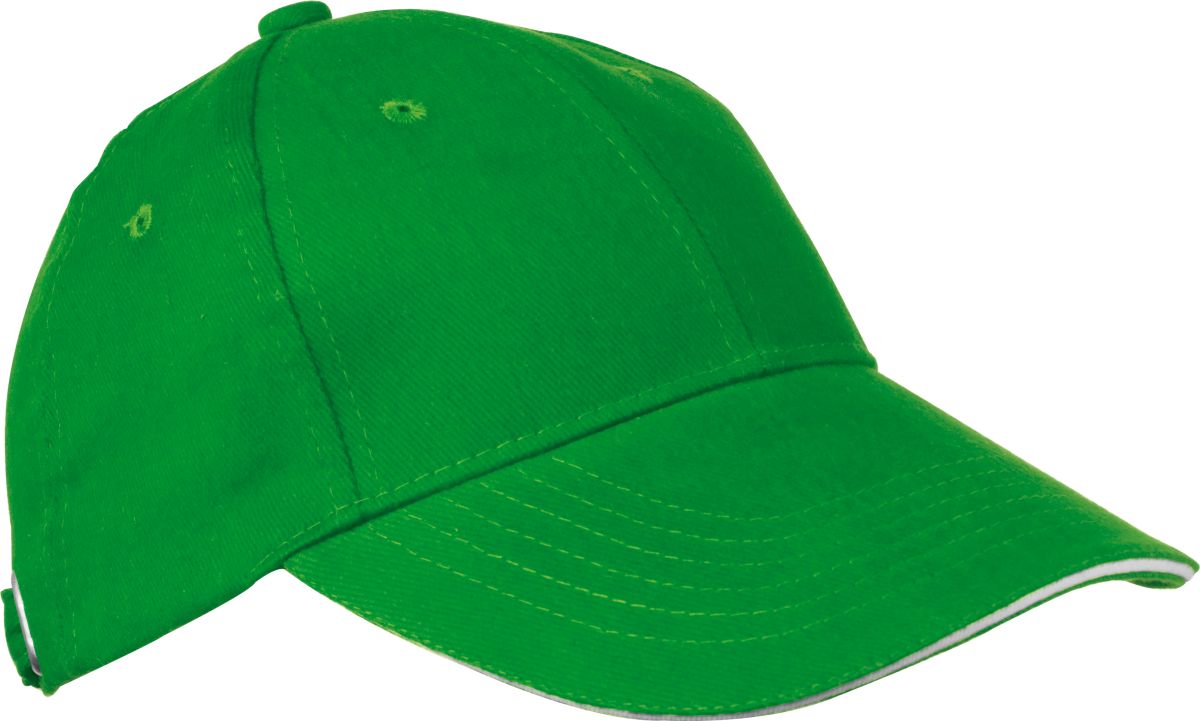 Šestipanelová baseballová čepice z česané bavlny s bílým proužkem na kšiltu a kovovým zapínáním, neobsahuje AZO prvky.