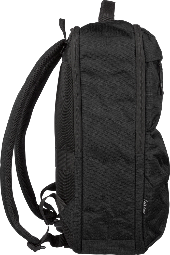 Batoh z rPET 300D vyrobený z recyklovaného oceánského plastu s odolnou texturovanou povrchovou úpravou. Objem 20 l se dvěma velkými přihrádkami na zip, polstrovanou přihrádkou na 15" notebook, dvěma předními kapsami, boční síťovanou kapsou a horním poutkem. Vybaven odvětrávanými ramenními popruhy, polstrovanými zády, popruhem na kolečkách. Rozměry: 43 cm x 30 cm