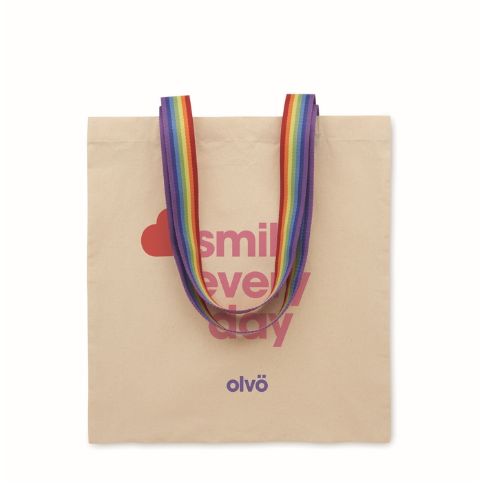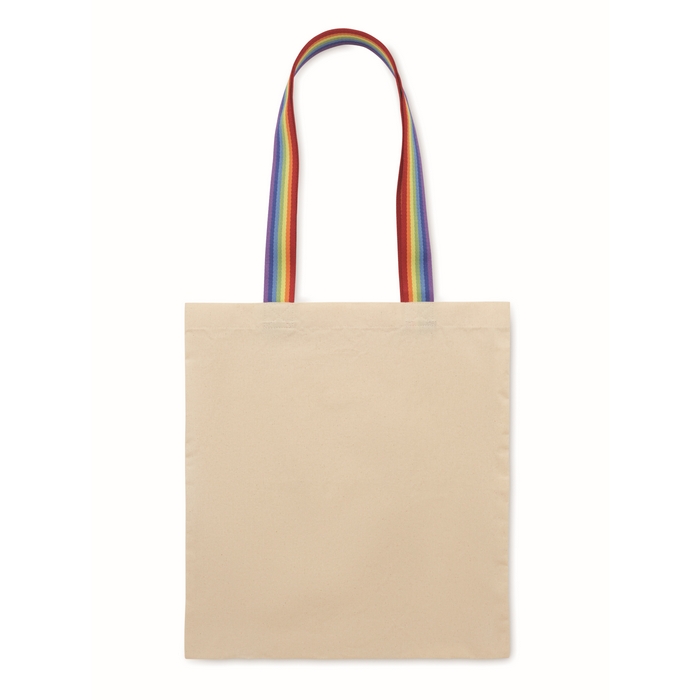 Nákupní taška z bavlny 180 g/m2 s duhovými uchy. Nosnost 2,5 kg. Rozměry: 38 x 42 cm