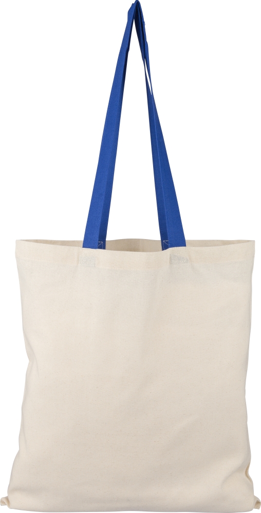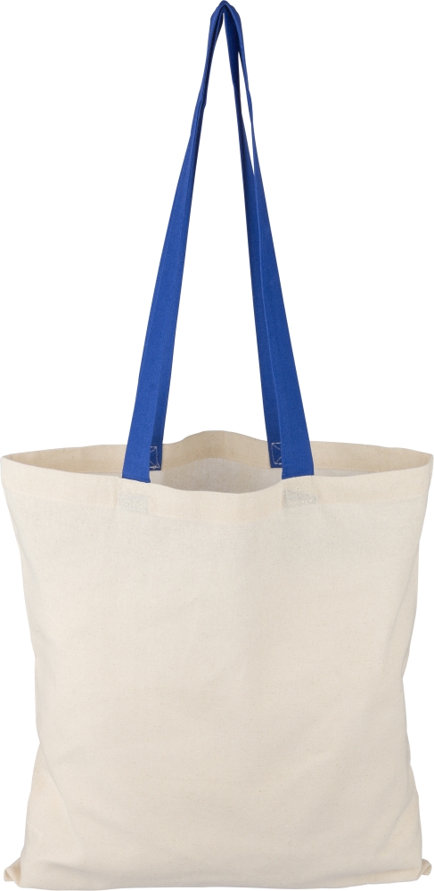 Nákupní taška z bavlny Oeko-Tex® (140 g/m2) v přírodní barvě s barevnými uchy. Rozměr 38 × 42 cm s uchy o délce 70 cm (šířka 2,5 cm). Včetně štítku Oeko-Tex®. Rozměry: 0,2 cm x 38 cm