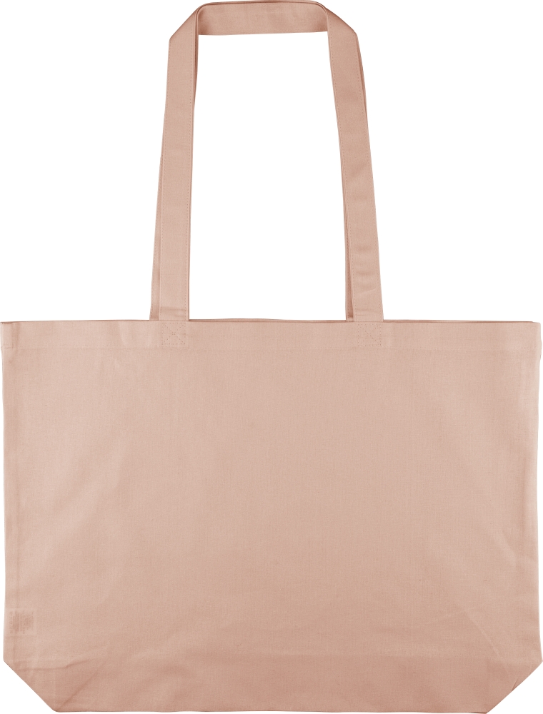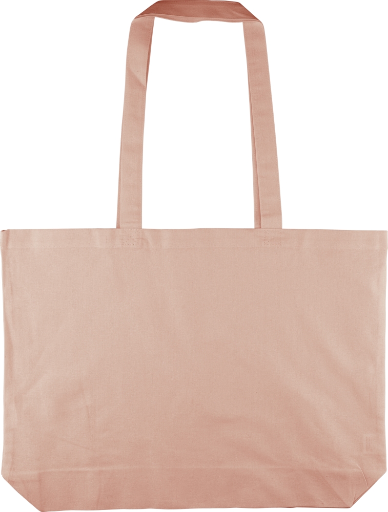 Nákupní taška z bavlny Oeko-Tex® (140 g/m2) s 10cm klínkem a dlouhými uchy (délka 70 cm, šířka 2,5 cm). Pastelově zbarvená bavlna. Včetně štítku Oeko-Tex®. Rozměry: 10 cm x 48 cm