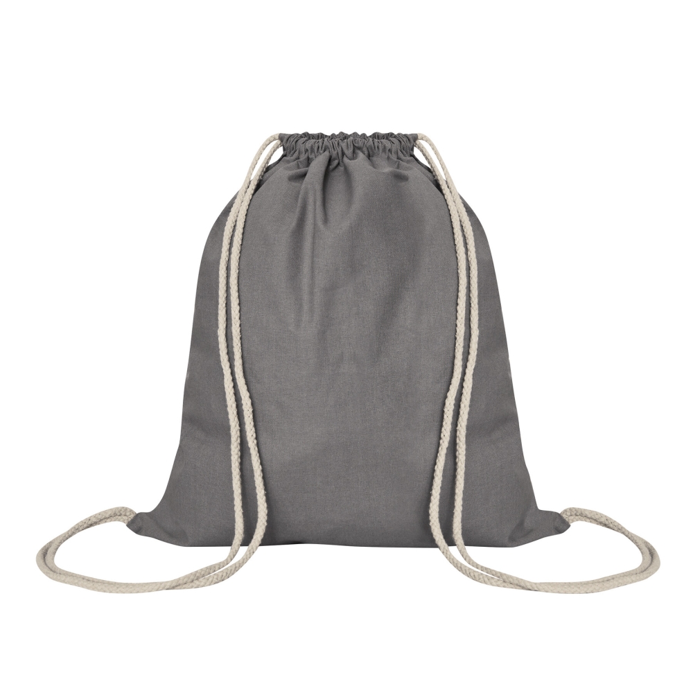 Stahovací batoh (cca 140 g/m2), se 2 uchy ze šňůrky, lze nosit přes rameno nebo jako batoh. Rozměry: 37 x 41 cm