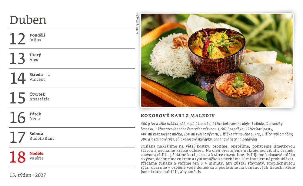 Mezinárodní kuchařka 2027, stolní kalendář