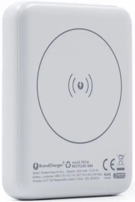 Ultratenká magnetická bezdrátová powerbanka kapesní velikosti vyrobená z recyklovaného ABS. S kapacitou 5 000 mAh podporuje 5W magnetické bezdrátové nabíjení kompatibilní se standardy MagSafe, Qi1 a Qi2. Disponuje také 12W portem USB-C pro kabelové nabíjení. Obsahuje inteligentní bezpečnostní čip pro ochranu před nadproudem, podbitím, přebíjením, přehřátím a zkratem. Vybaven LED indikátorem a inteligentním výkonným enginem. Vstup USB-C: 5V. Bezdrátový výstup: 5W. Rozměry: 1,4 cm x 7,7 cm