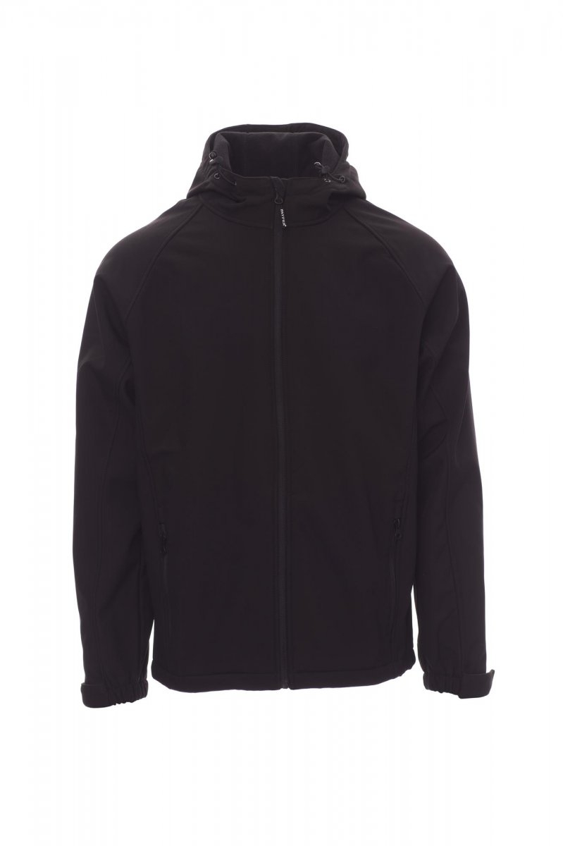 Pánská softshellová bunda, nepromokavá, větruvzdorná, raglánové rukávy, kapuce se šňůrkami ke stažení, dvě vnější kapsy na zip. Zapínání na zip, suchý zip u krku. Výška vodního sloupce 8 000 mm, prodyšnost 3 000 mvp. Materiál 100% polyester, shoft-shell, 320 g/m2.