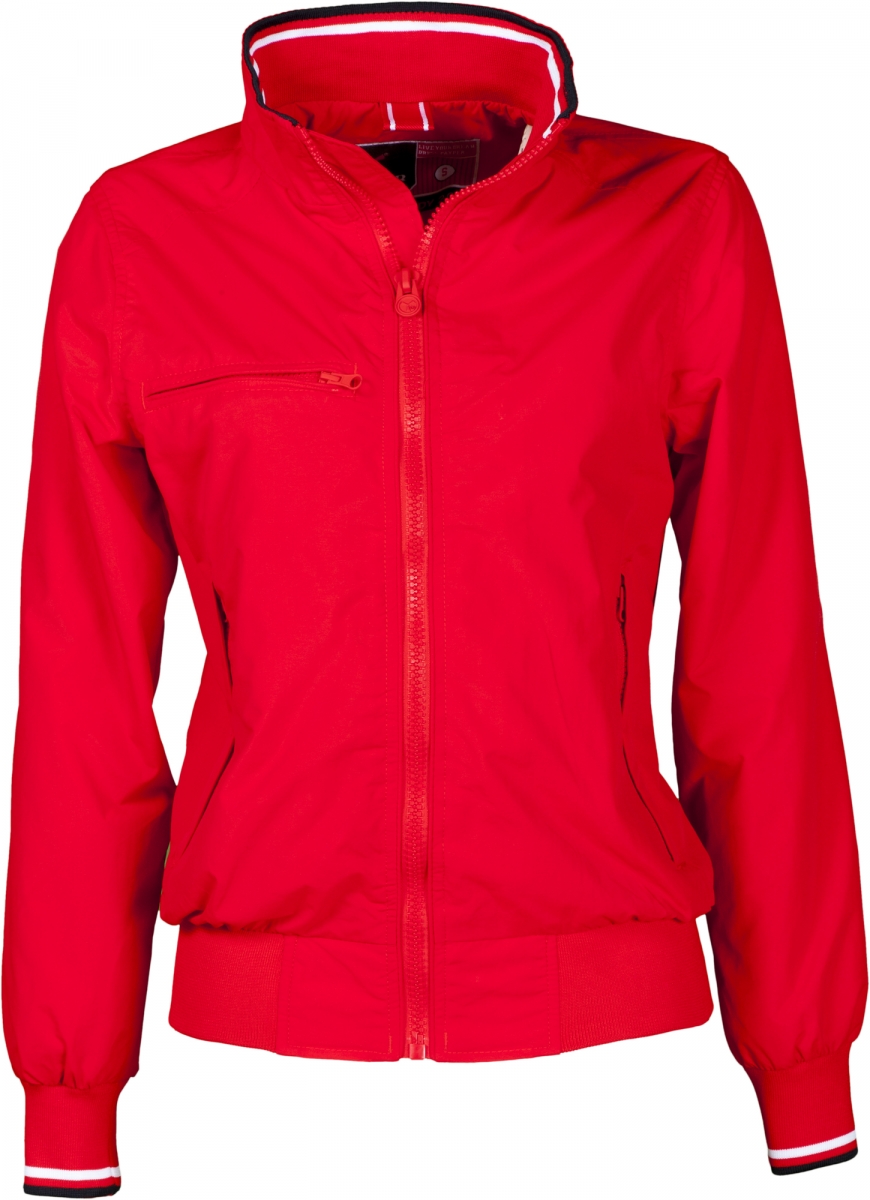 Dámská bunda s pružným žebrovým lemem u krku, v pase a na rukávech, dvě vnější boční a jedna náprsní kapsa se zipem, síťovaná podšívka. Na zádech a hrudi je na vnější straně zip pro usnadnění potisku a výšivek. Materiál 100% nylon taslon 288T.