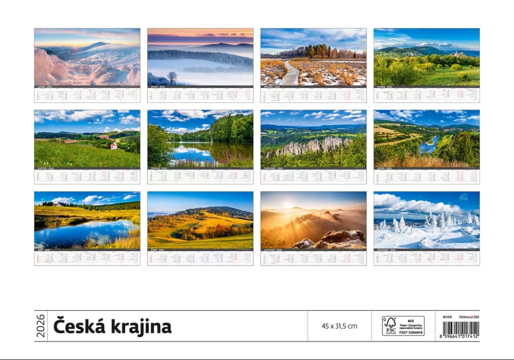 Česká krajina 2027, nástěnný kalendář, prodloužená záda