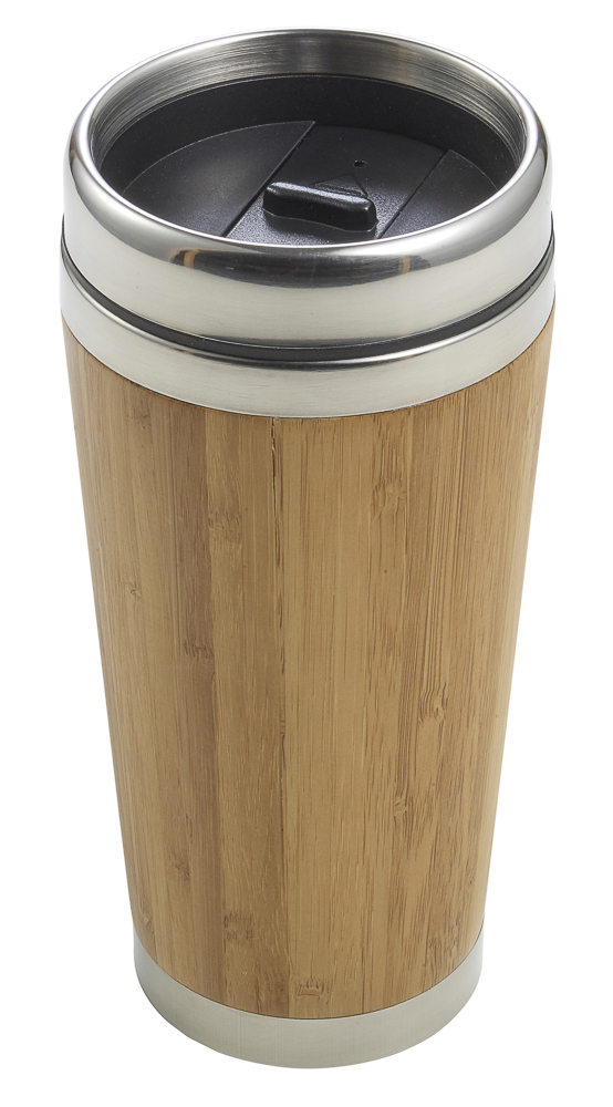 Praktický termohrnek s bambusovým designem a vnitřkem z nerezové oceli. Vhodný ke krátké přepravě, pokud chcete udržet svůj nápoj teplý nebo chladný. Plastové víčko s otvorem pro napití. Materiál: Bambus, nerezová ocel. Rozměry: 8 x 17,7 cm