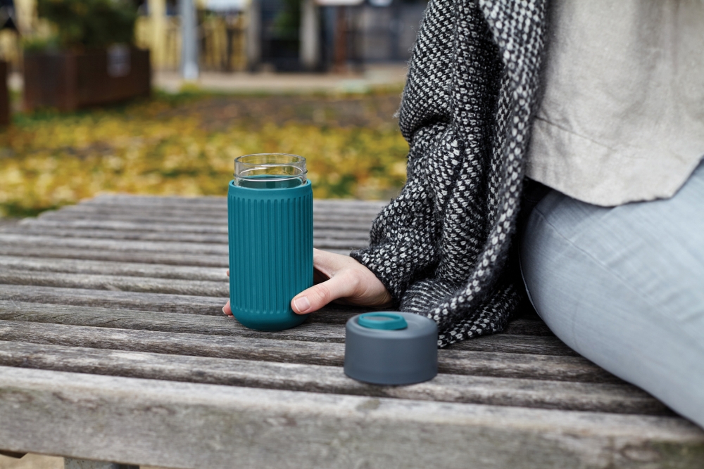 Cestovní skleněný hrnek 340 ml, tyrkysová