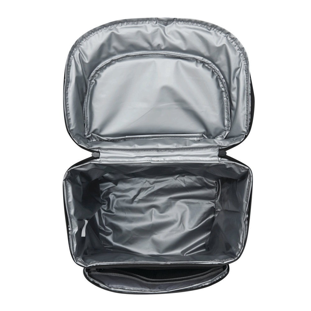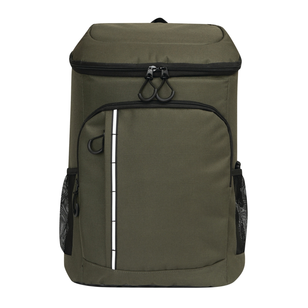 Chladicí batoh: 1 velká hlavní kapsa na zip s izolací a podšívkou z PEVA, 1 přední kapsa na zip se síťovanou přihrádkou, 1 svislá přední kapsa na zip a reflexní proužek, 2 boční síťované kapsy, 1 odnímatelný otvírák na lahve z nerezové oceli, vodoodpudivé dno, nastavitelné polstrované ramenní popruhy, madlo. Rozměry: 24 x 16 x 35-44 cm