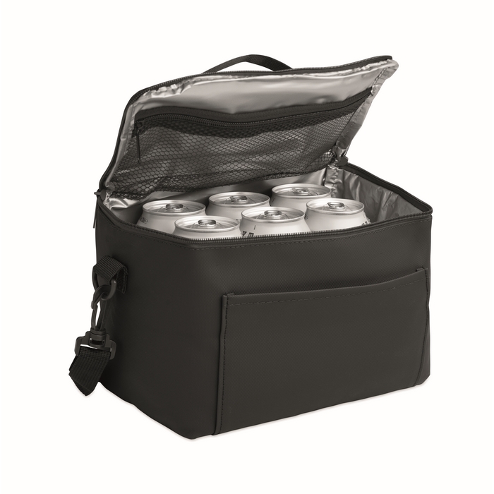 Chladicí taška z PU s podšívkou ze 100 g RPET polyesteru. Včetně 1 přední kapsy, rukojeti a ramenního popruhu. Izolační PE pěna s PEVA podšívkou. Objem 5,5 l. Rozměry: 25 x 18 x 15.5 cm