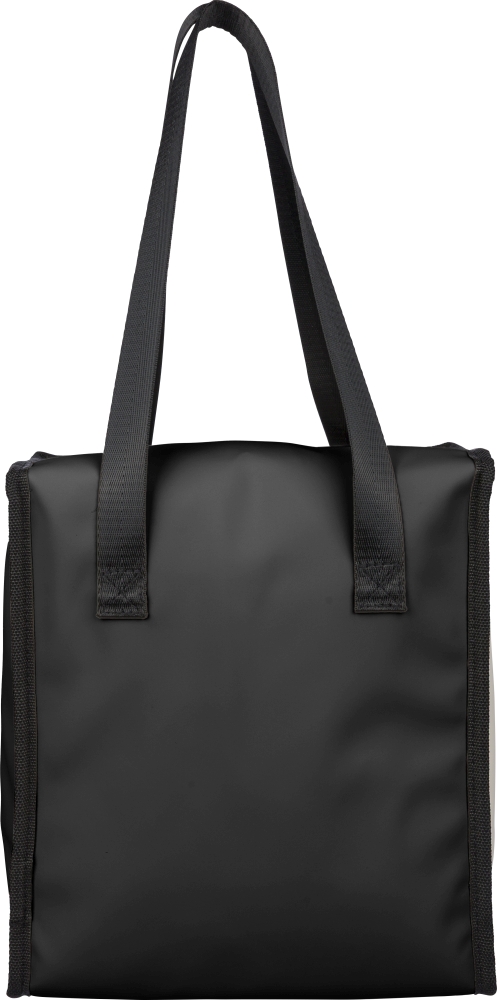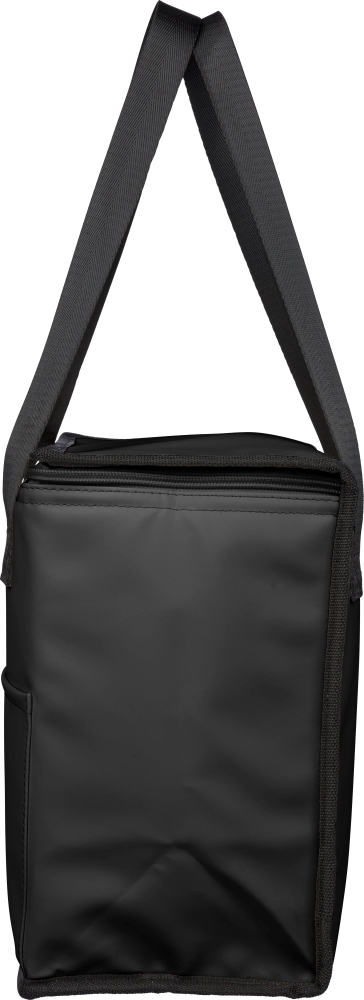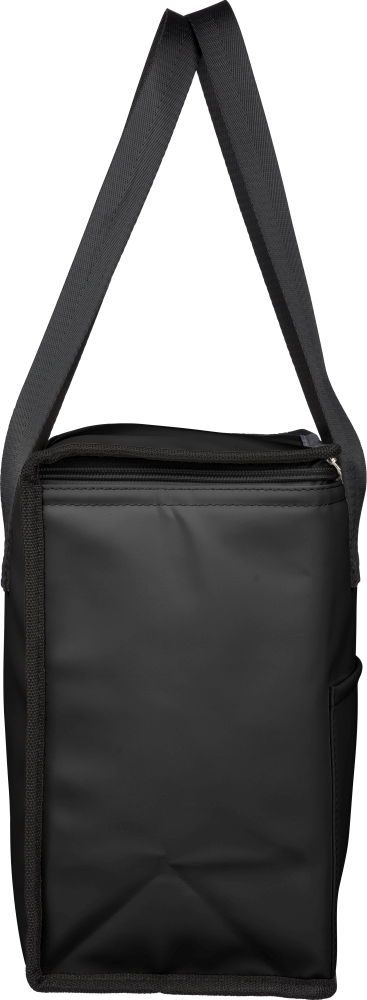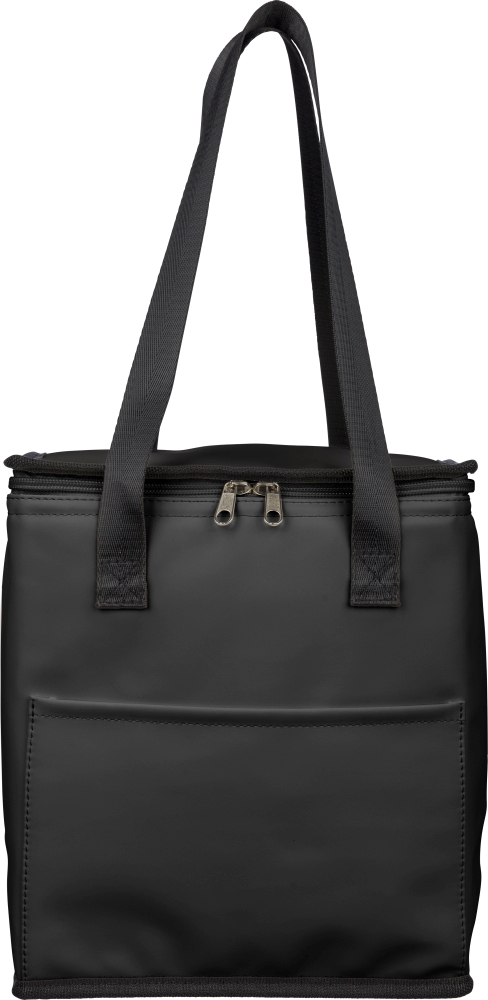 Chladicí taška z recyklovaného PU (objem 9 l) s podšívkou z recyklovaného polyesteru 210D. Má dlouhá ucha (2,5 × 66 cm) a přední kapsu pro další úložný prostor. Včetně malého recyklovaného loga uvnitř štítku. Rozměry: 26 cm x 23 cm