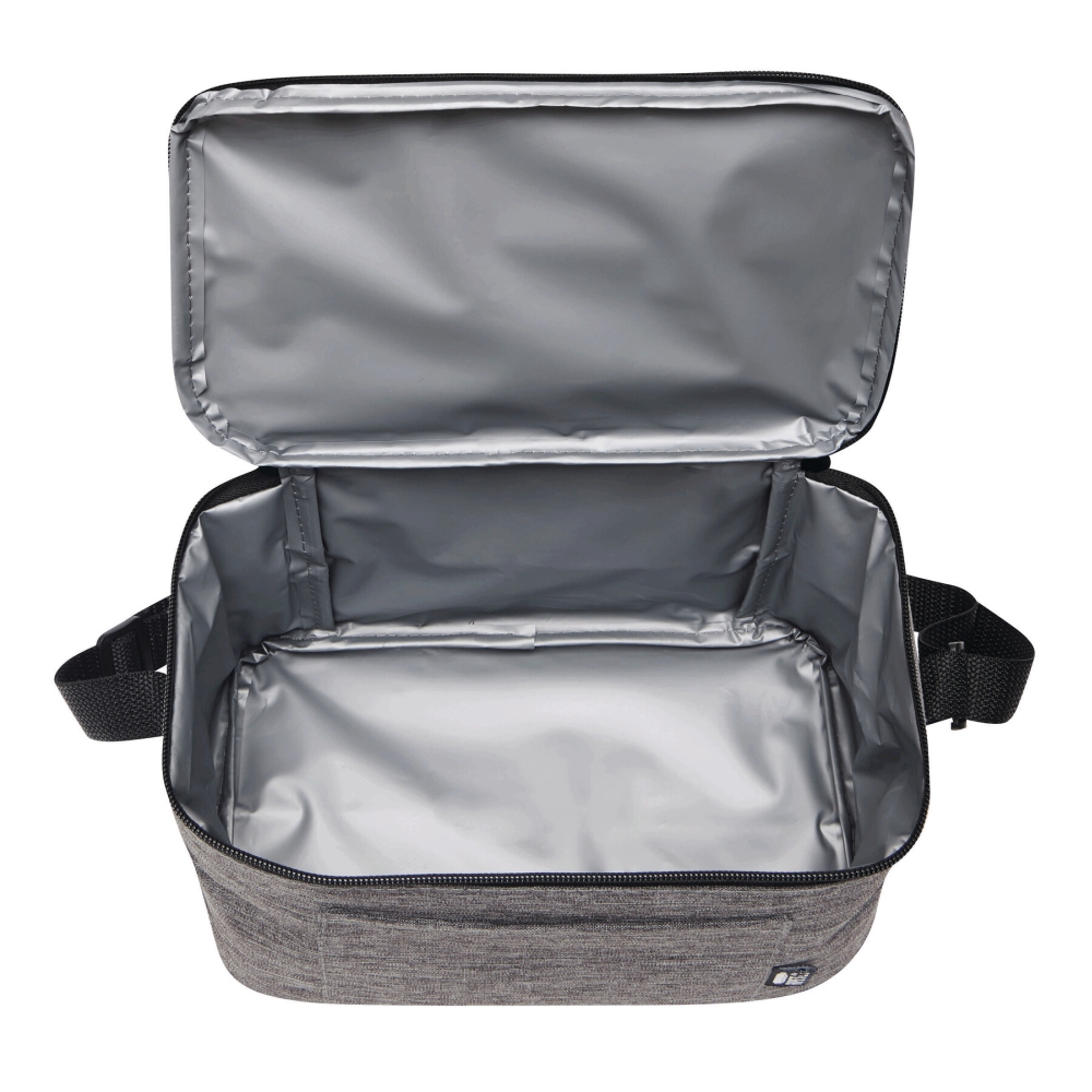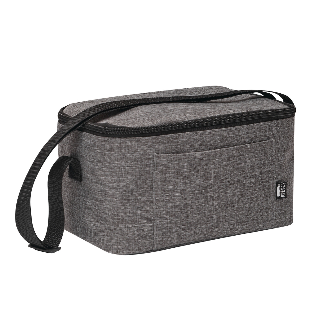 Chladicí taška z recyklovaného polyesteru (rPET), s velkou, zateplenou přihrádkou na zip z poly (PEVA) a zasouvací přední kapsou, nastavitelný ramenní popruh. Rozměry: 25 x 15,5 x 14,5 cm
