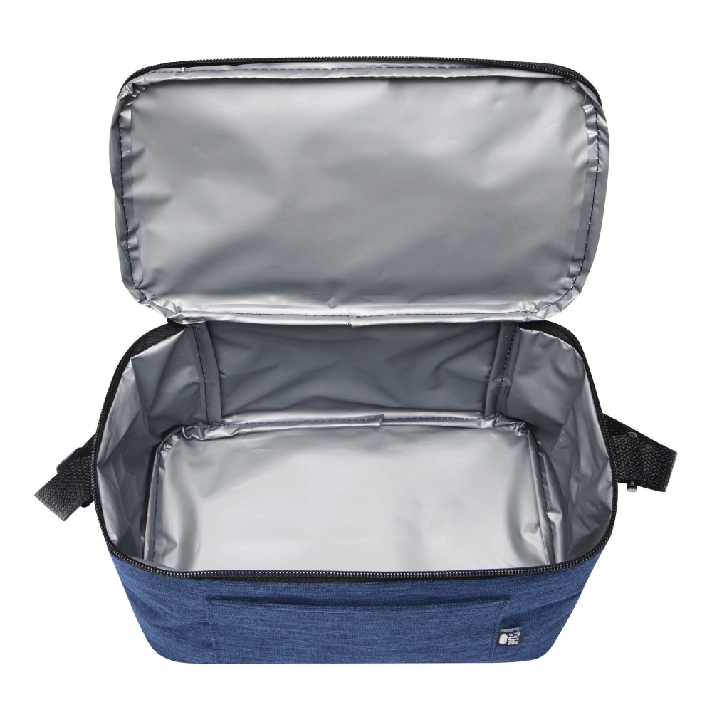 Chladicí taška z recyklovaného polyesteru (rPET), s velkou, zateplenou přihrádkou na zip z poly (PEVA) a zasouvací přední kapsou, nastavitelný ramenní popruh. Rozměry: 25 x 15,5 x 14,5 cm
