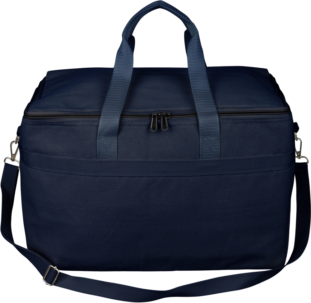 Chladicí taška z recyklované polybavlny (330 g/m2) s hliníkovou fólií. Objem 23 l. Rukojeti o délce 60 cm (šířka 3,5 cm), nastavitelný ramenní popruh o délce 110 cm (šířka 2,5 cm) s kovovou přezkou a odpovídající popruh. Součástí je vnější a vnitřní štítek z rPET. Rozměry: 21 cm x 39 cm