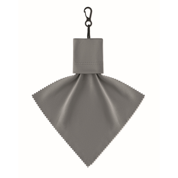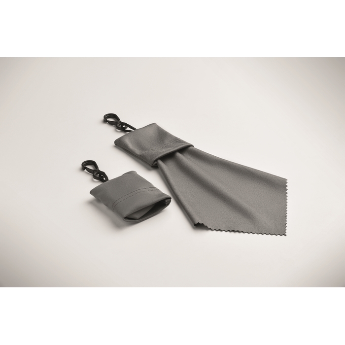 Čisticí hadřík z RPET s pouzdrem a PP plastovým háčkem. Rozměry: 15 x 18 cm