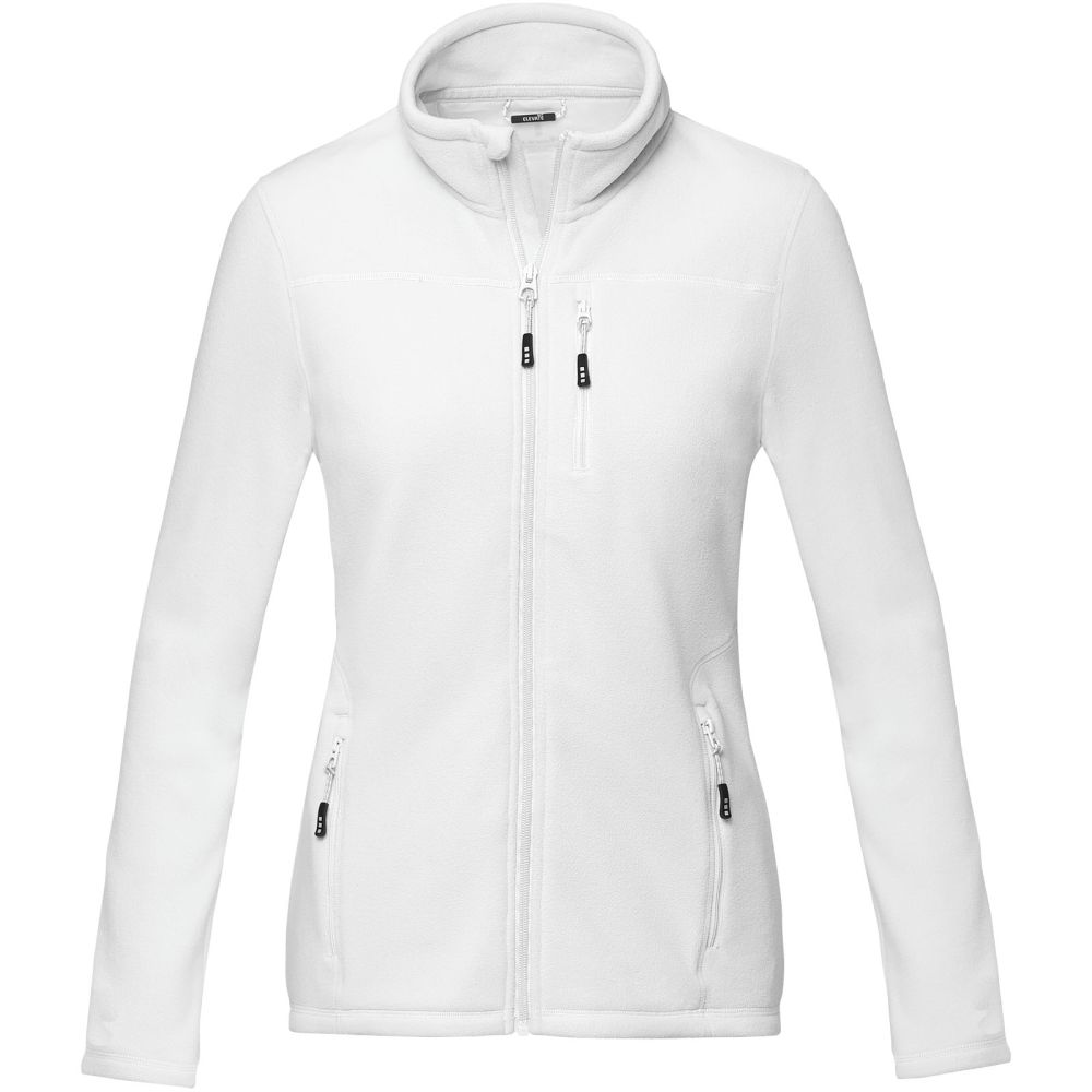 Dámská bunda z recyklovaného microfleecu, značka Elevate. Bunda je celorozepínací se stojacím límečkem, má recyklovaný středový přední zip GRS, vnitřní klopu s ochranou brady, přední kapsy se zipem, náprsní kapsu na zip, táhla zipů s příjemným povrchem, závěsné poutko. Micro fleece 100% GRS certifikovaný recyklovaný polyester, 174 g/m2.