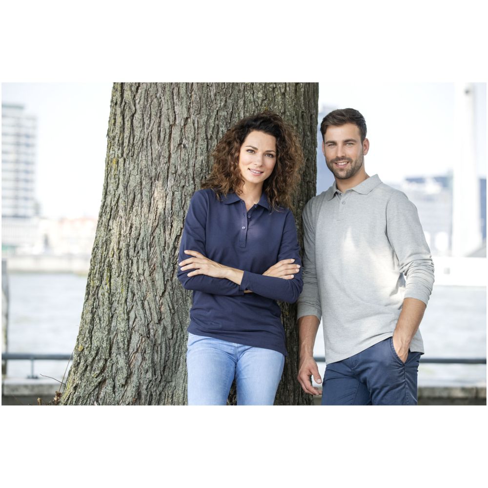 Dámská bavlněná polokošile s dlouhým rukávem, značka Elevate. Polokošile je na tři knoflíčky, knoflíčky jsou gravírované a v barvě polokošile. Polokošile má plochý žebrový límeček, detaily s vybraným stehem, saténovou lemovku výstřihu, boční rozparky se saténovou lemovkou. Piké úplet 100% bavlna, 200 g/m2.
