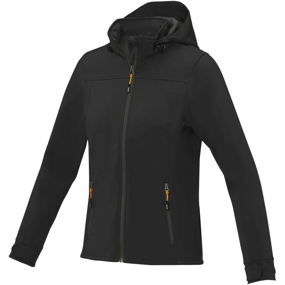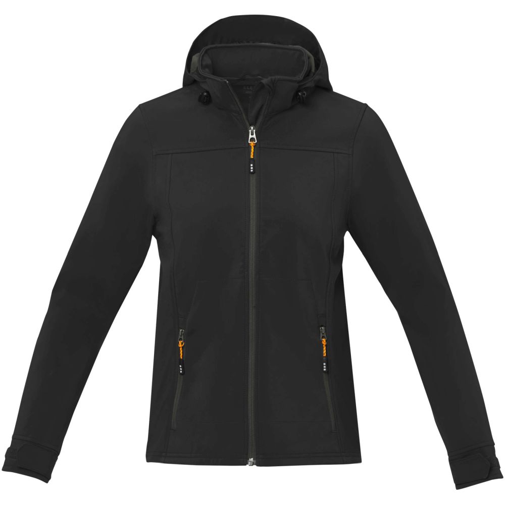 Dámská softshellová bunda s kapucí, značka Elevate. Bunda má 5000 mm voděodolnost a 3000 g/m2 prodyšnost. Tři vrstvy: čtyřcestný stretch, TPU, mikrofleece. Odnímatelná kapuce. Nastavitelné manžetky na suchý zip. Elastické šňůrky v kapuci a spodním lemu s nastavitelnými olivkami. Přední kontrastní reverzní zip . Kapsy na ruce na zip. Příjemná táhla zipů (s extra sadou v antracitové barvě). Tvarované švy a zúžený pas pro zeštíhlující outfit. Potisk štítku technologií heat transfer pro větší pohodlí. Tkaný 90% polyester, 10% elastan, 300 g/m2, Bonding, Mikro fleece 100% polyester.