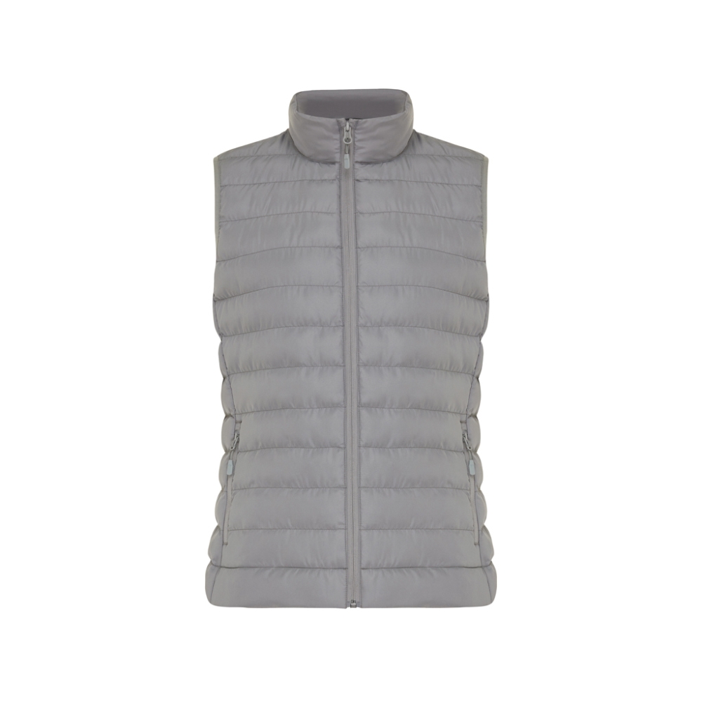 Dámská medium fit vesta vyrobená ze 100 % post-consumer recyklovaného polyesteru. Perlová výplň ze 100 % recyklovaného polyesteru. Oboustranný zip na přední straně, kapsy na zip po stranách. Tahače zipů v ladících odstínech. Průramky s elastickým lemování