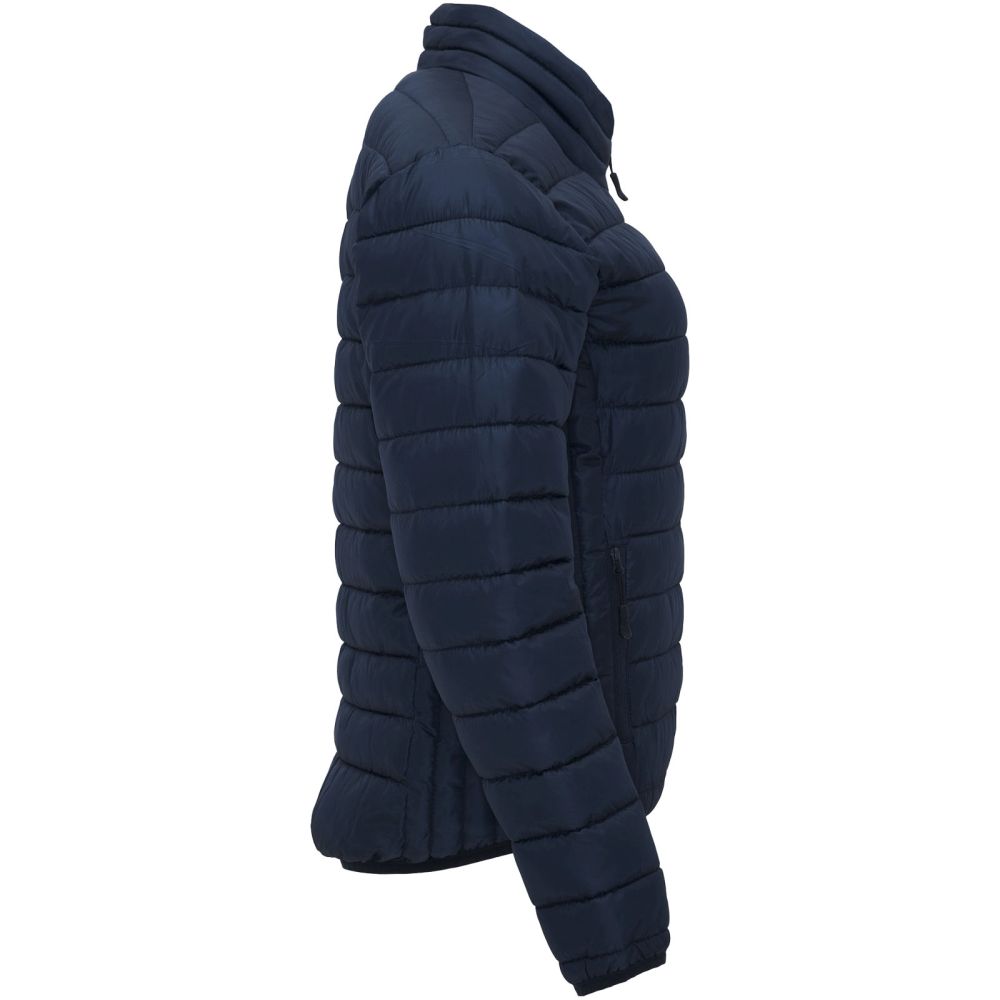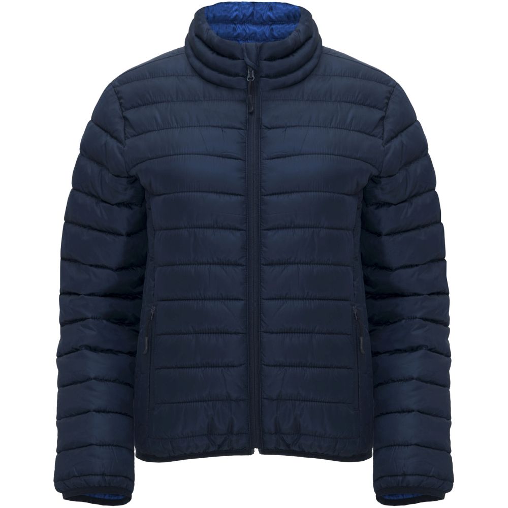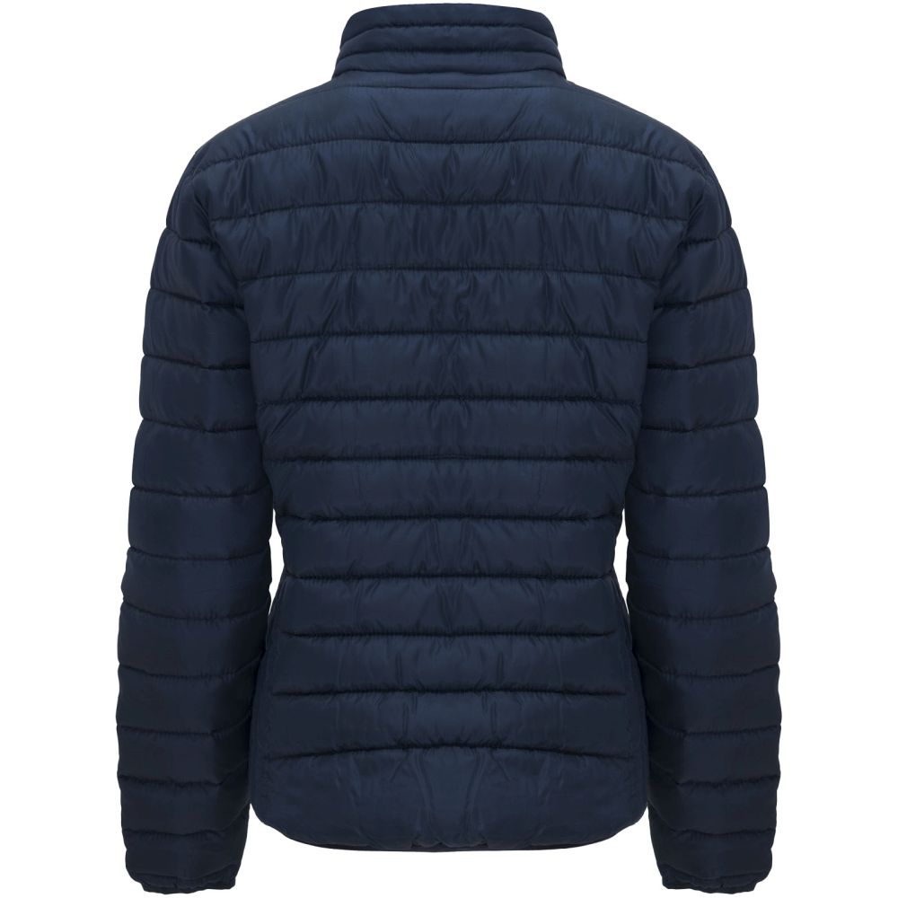 Dámská prošívaná bunda s péřovou výplní. Inverzní zipy s odpovídajícím chráničem brady a tahákem. Dvě přední kapsy se zipy. Odpovídající elastické lemování na límci, manžetách a lemu. Kontrastní vnitřní podšívka. Obsahuje úložnou tašku. Lehký a skládací oděv. Vypasovaný střih. Odnímatelný štítek. Voděodolný. Větruodolné. Modelka měří 179 cm a má na sobě velikost S.