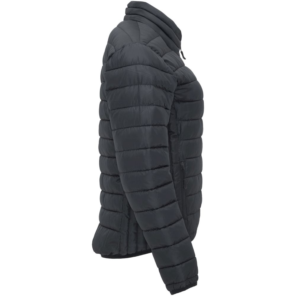 Dámská prošívaná bunda s péřovou výplní. Inverzní zipy s odpovídajícím chráničem brady a tahákem. Dvě přední kapsy se zipy. Odpovídající elastické lemování na límci, manžetách a lemu. Kontrastní vnitřní podšívka. Obsahuje úložnou tašku. Lehký a skládací oděv. Vypasovaný střih. Odnímatelný štítek. Voděodolný. Větruodolné. Modelka měří 179 cm a má na sobě velikost S.