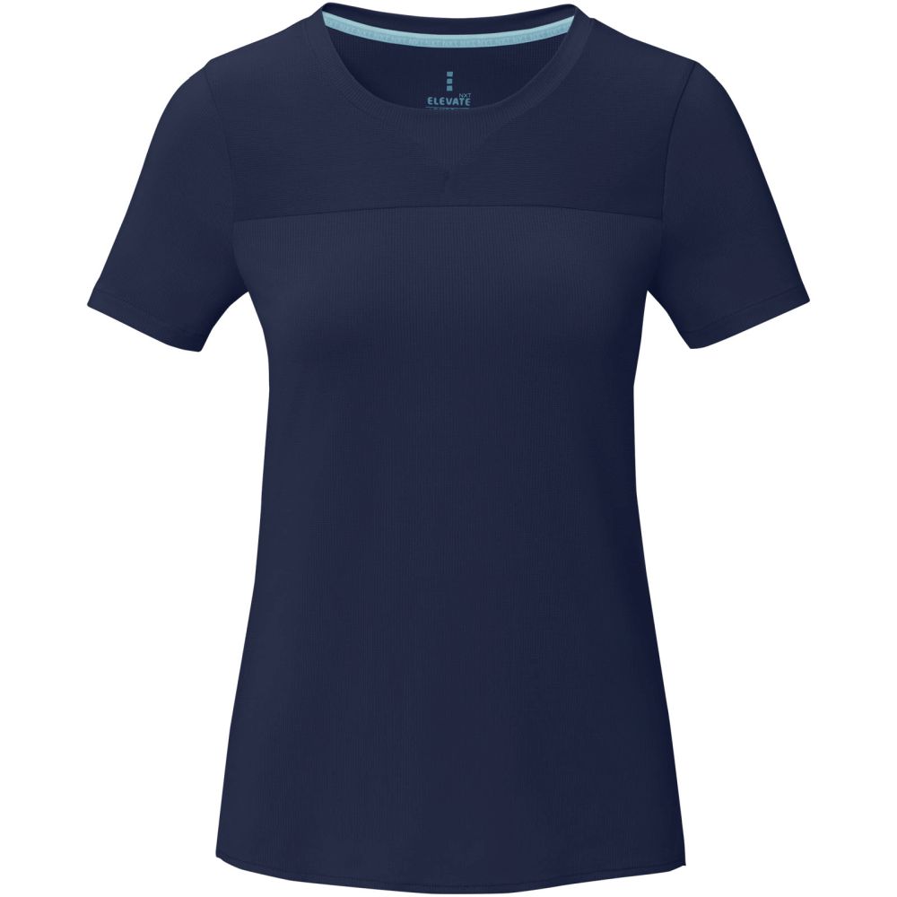 Dámské funkční tričko s krátkým rukávem, značka Elevate. Tričko má kulatý výstřih s detailem ve tvaru V, límec ve shodné tkanině, boční rozparky, prodloužený zadní díl. Tato položka byla vyvinuta ve spolupráci se společností Waste2Wear. Síťovina s úpravou Cool Fit 90% GRS certifikovaný recyklovaný polyester, 10% Elastan, 160 g/m2.