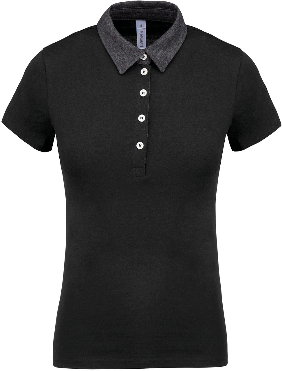 Dámské polo triko s kontrastním límečkem a 5 knoflíčky, 180g/m2, materiál 100% česaná bavlna.