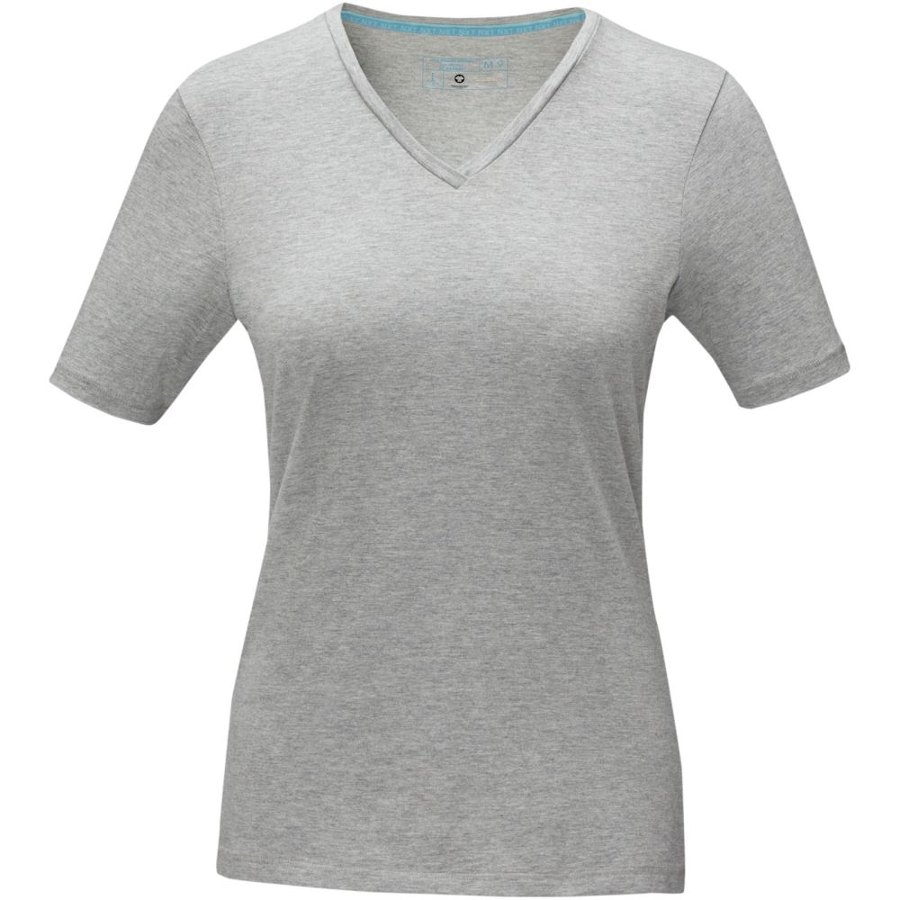 Dámské bavlněné tričko s krátkým rukávem, značka Elevate. Tričko má výstřih ve tvaru V, lem výstřihu je ve stejné tkanině. Tričko je šité ze stretchové látky, má detaily s vybraným stehem a hedvábný průramník. Jednolícní žerzej 95% certifikovaná organická bavlna, 5% Elastan, 200 g/m2.