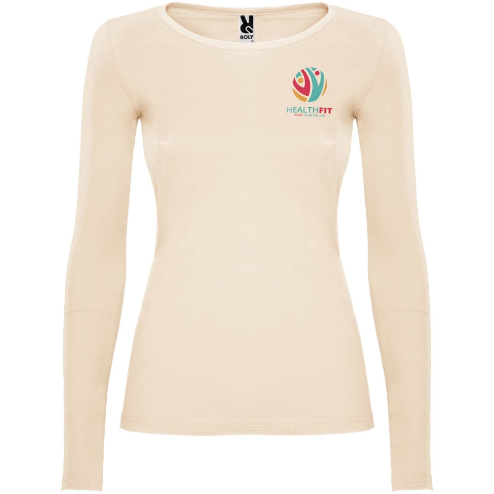 Polopřiléhavé tričko s dlouhým rukávem a kulatým výstřihem s jemným lemem. Rukávy bez manžet. Boční švy. Sundávací štítek.