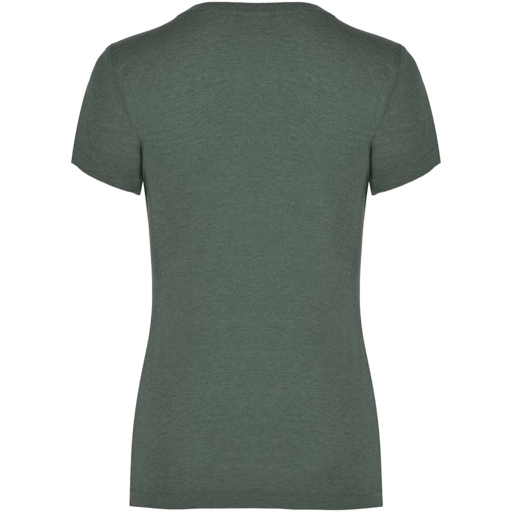 Tričko s krátkým a melírovým efektem. Přiléhavý střih. 1×1 žebrovaný výstřih ke krku s vnitřními zesílenými krytými švy. Trubková tkanina. Odnímatelný štítek.