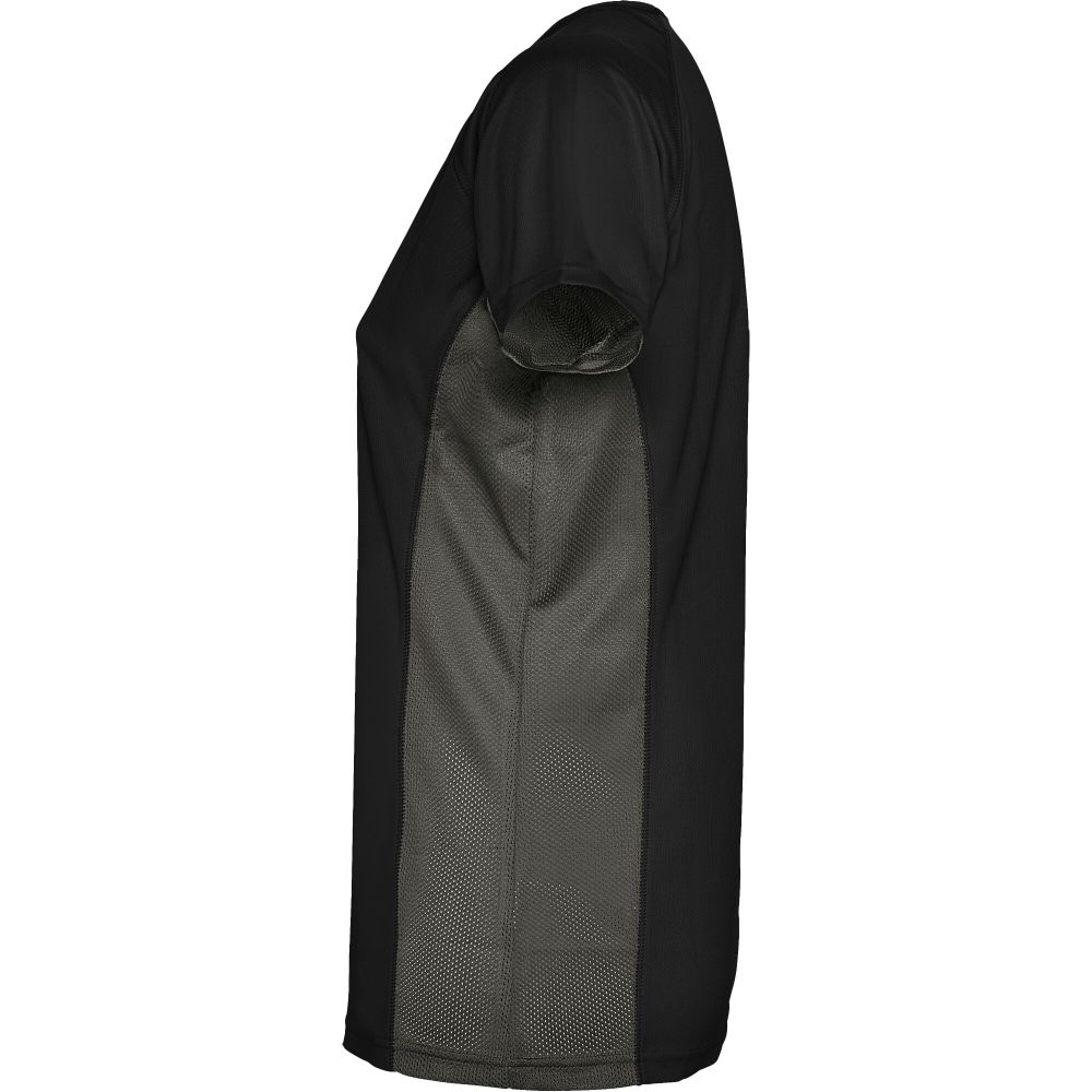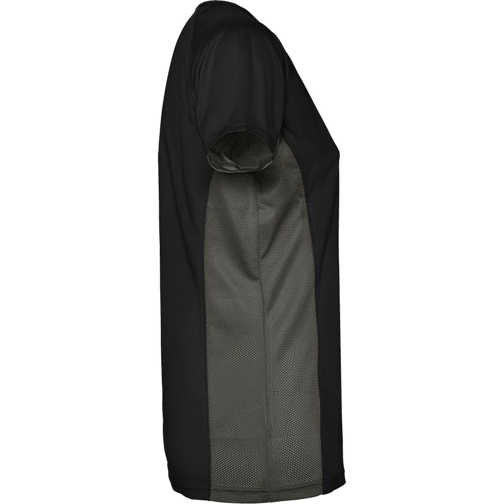 Technická a prodyšná látka. Kombinace dvou polyesterových látek: Hlavní látka „ptačí oko“, boční panely a vnitřní rukáv z mikroperforované látky. Kulatý výstřih s vnitřními zesílenými krytými švy. Odnímatelný štítek. Materiál: 100% polyester