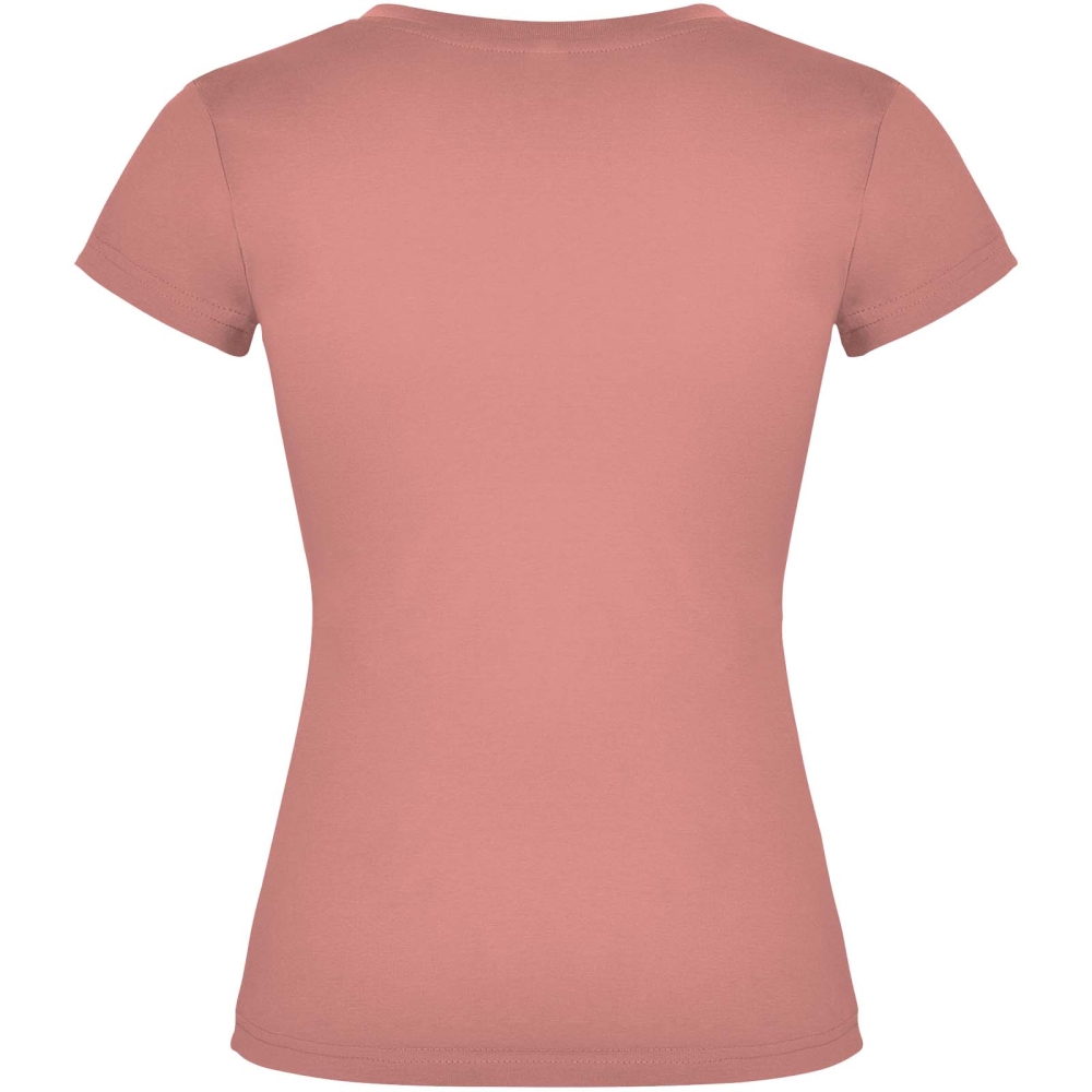 Dámské tričko s krátkým rukávem a výstřihem do V s úpravou 1x1 žebrování. Úzký střih s bočními švy. Odnímatelný štítek.