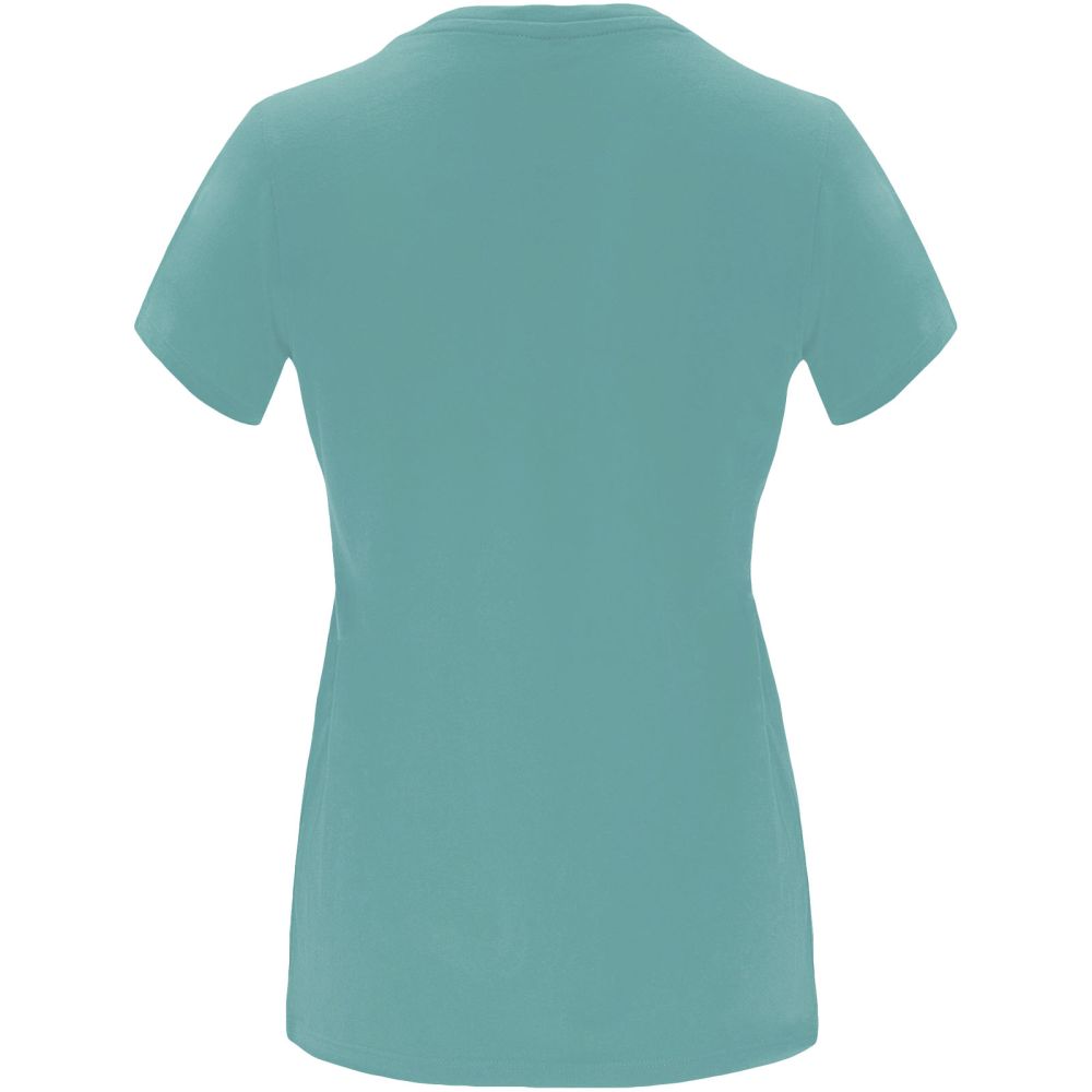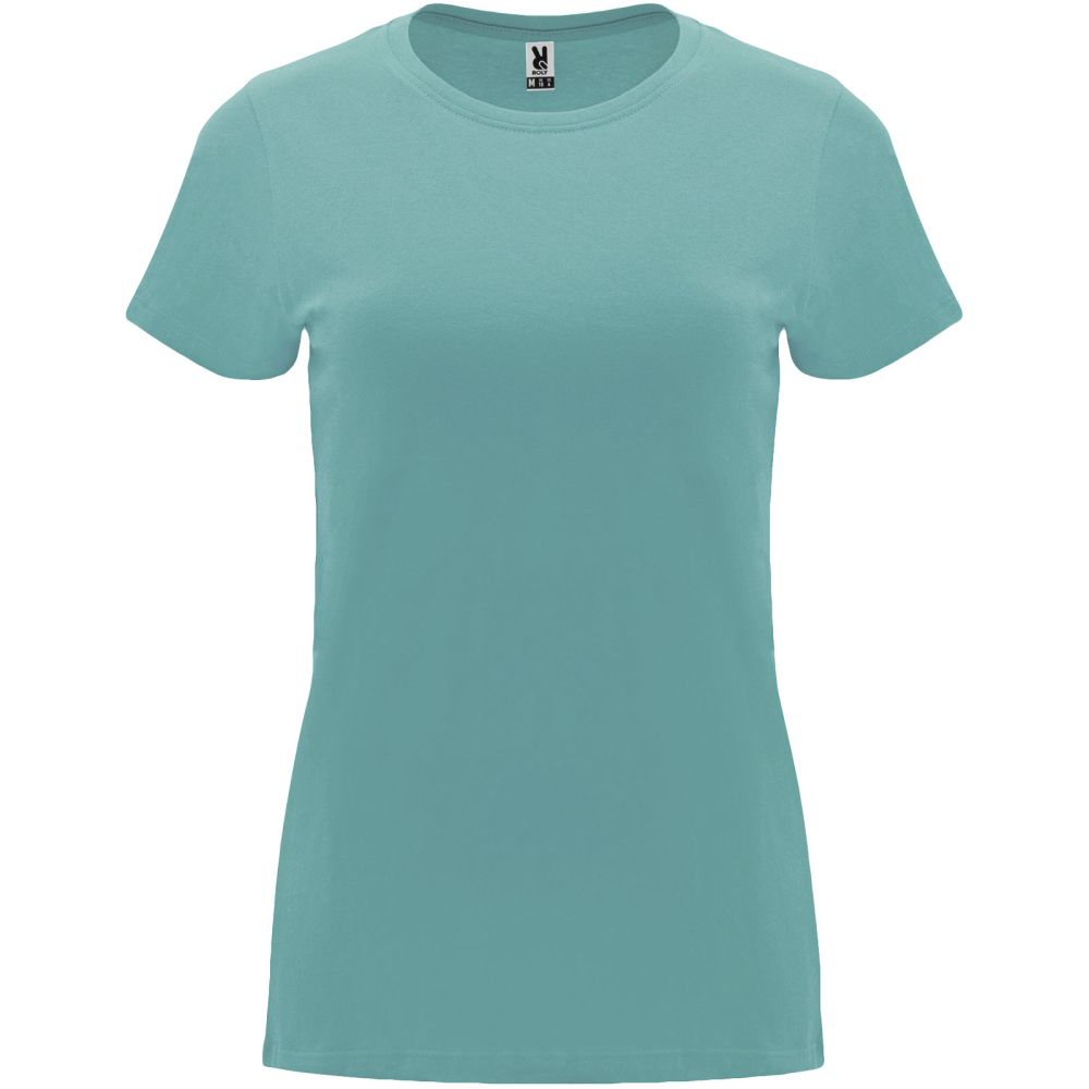 Dámské tričko s krátkým rukávem přiléhavého střihu. Žebrovaný výstřih ke krku. Zpevněné skryté švy na průkrčníku. Sundávací štítek. Materiál: 100% bavlna