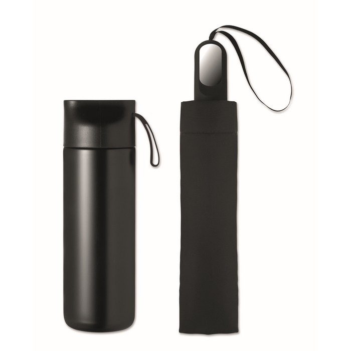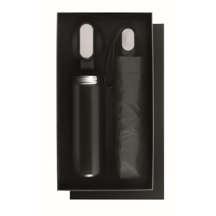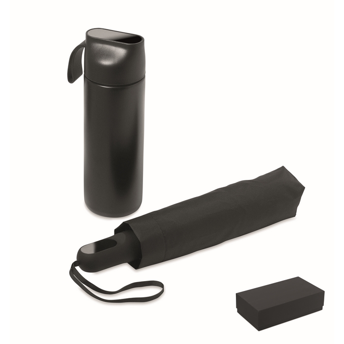 Dárková sada lahve a deštníku, černá