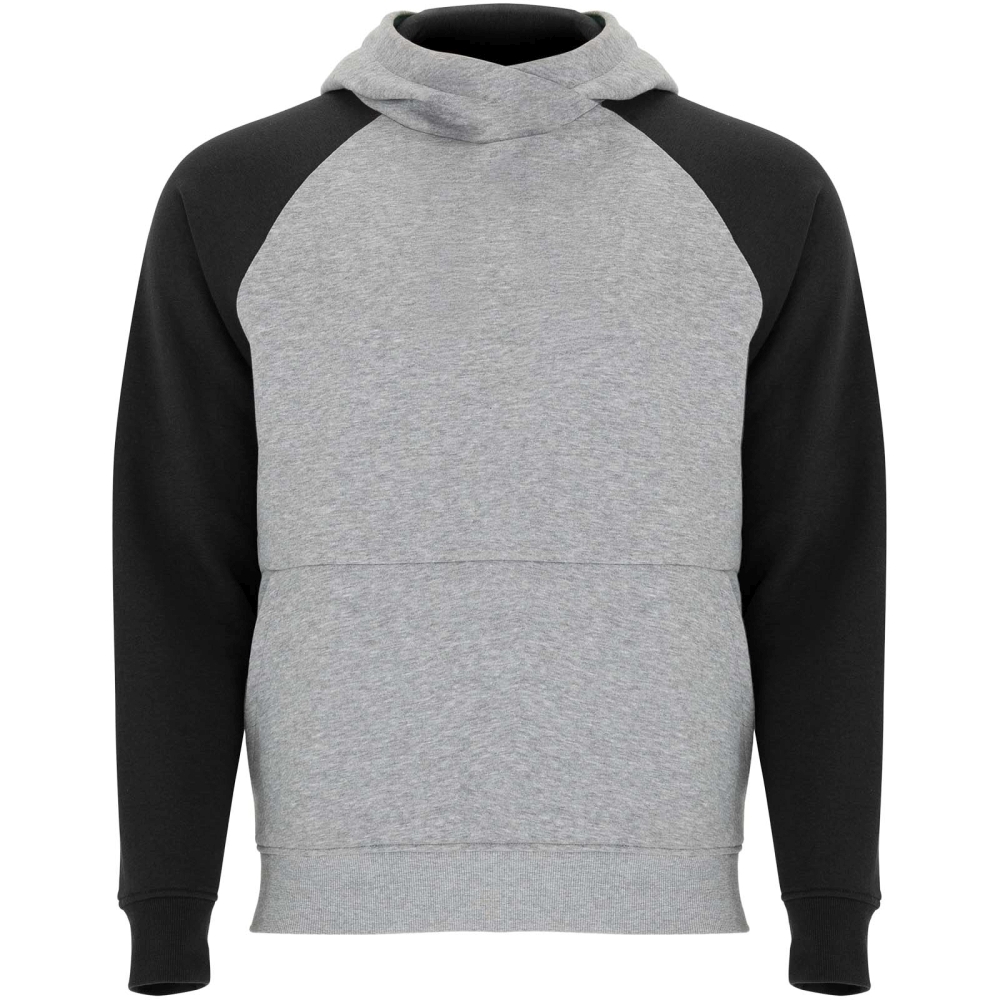 Dvoubarevná unisex mikina s kapucí. Kapuce se zkříženým límcem a kovovými očky. Kontrastní vnitřní kapuce, stahovací šňůrka a raglánové rukávy. Klokaní kapsa. Manžety a lem z elastanového žebrového úpletu 1 × 1. Odnímatelný štítek.
