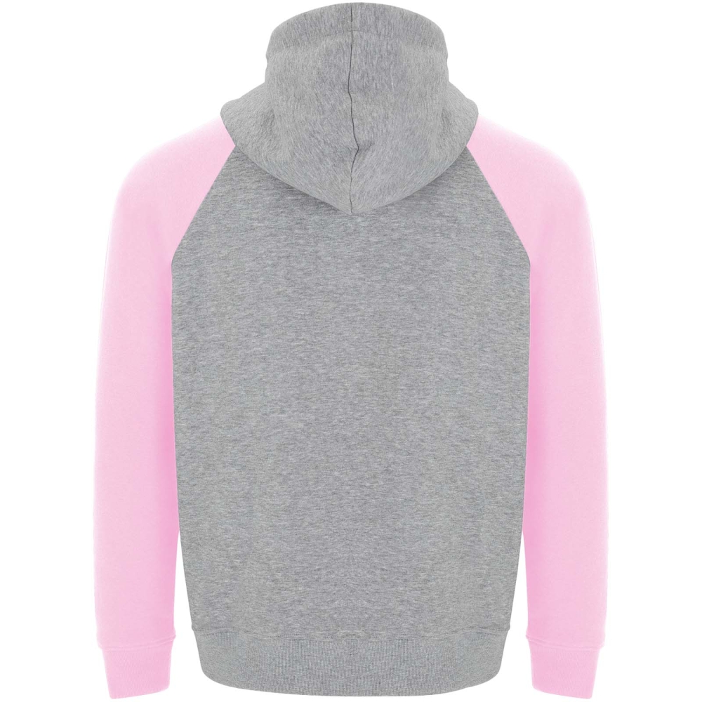 Dvoubarevná unisex mikina s kapucí. Kapuce se zkříženým límcem a kovovými očky. Kontrastní vnitřní kapuce, stahovací šňůrka a raglánové rukávy. Klokaní kapsa. Manžety a lem z elastanového žebrového úpletu 1 × 1. Odnímatelný štítek.