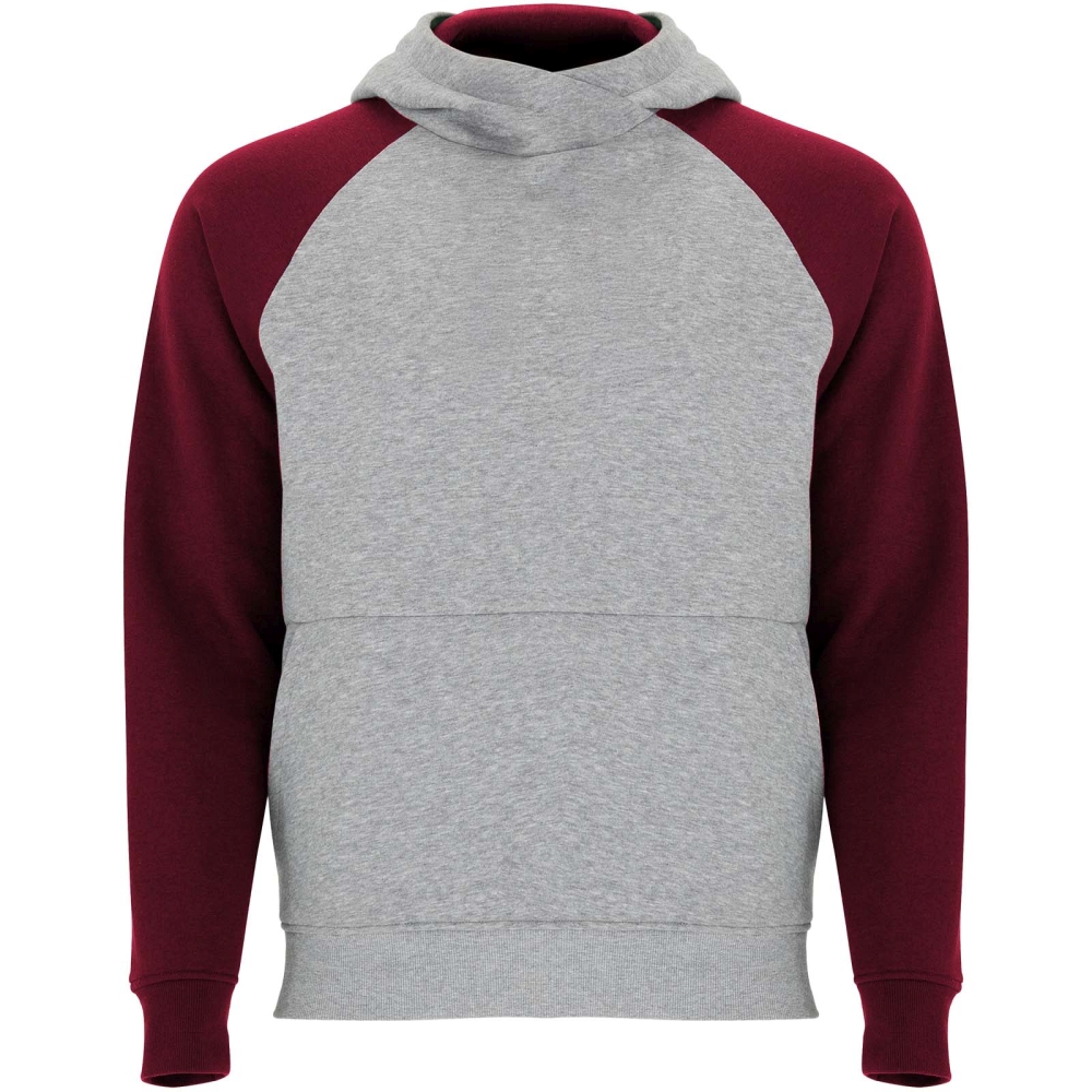 Dvoubarevná unisex mikina s kapucí. Kapuce se zkříženým límcem a kovovými očky. Kontrastní vnitřní kapuce, stahovací šňůrka a raglánové rukávy. Klokaní kapsa. Manžety a lem z elastanového žebrového úpletu 1 × 1. Odnímatelný štítek.