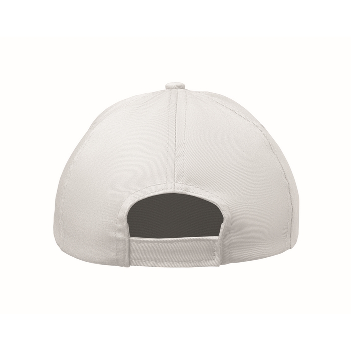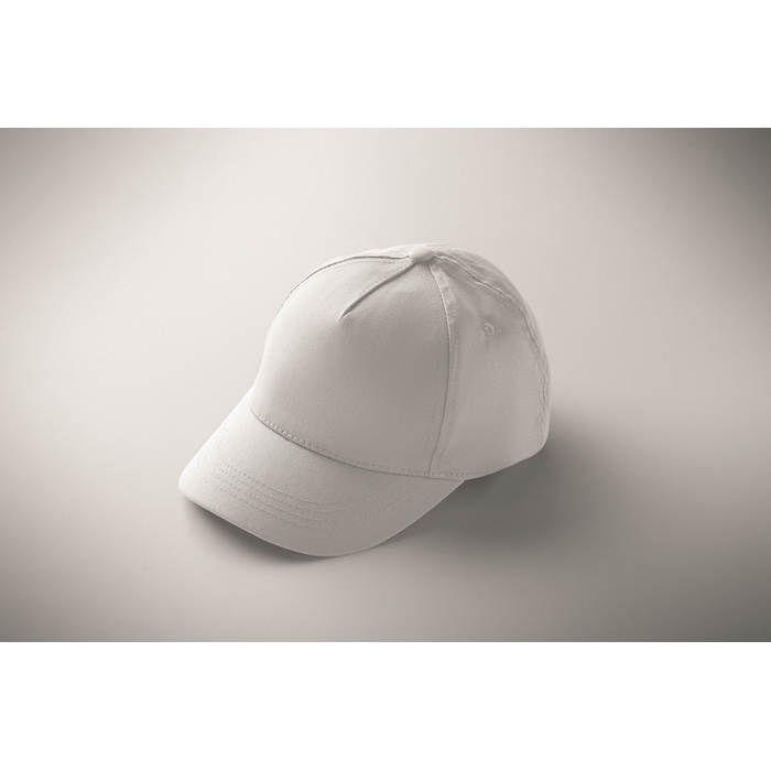 Pětipanelová dětská kšiltovka z bavlněného 180g kepru s nastavitelným zapínáním na suchý zip pro pohodlné nošení. Rozměry: 54 cm