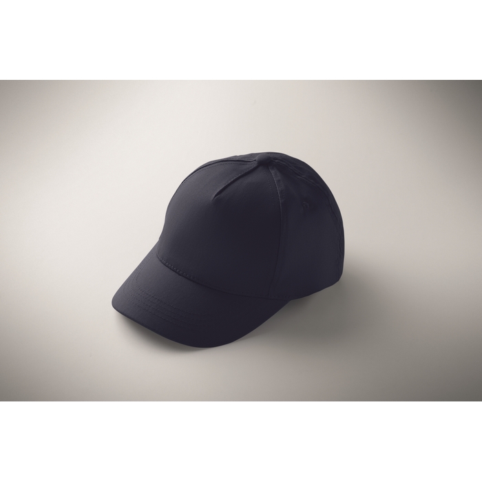 Pětipanelová dětská kšiltovka z bavlněného 180g kepru s nastavitelným zapínáním na suchý zip pro pohodlné nošení. Rozměry: 54 cm